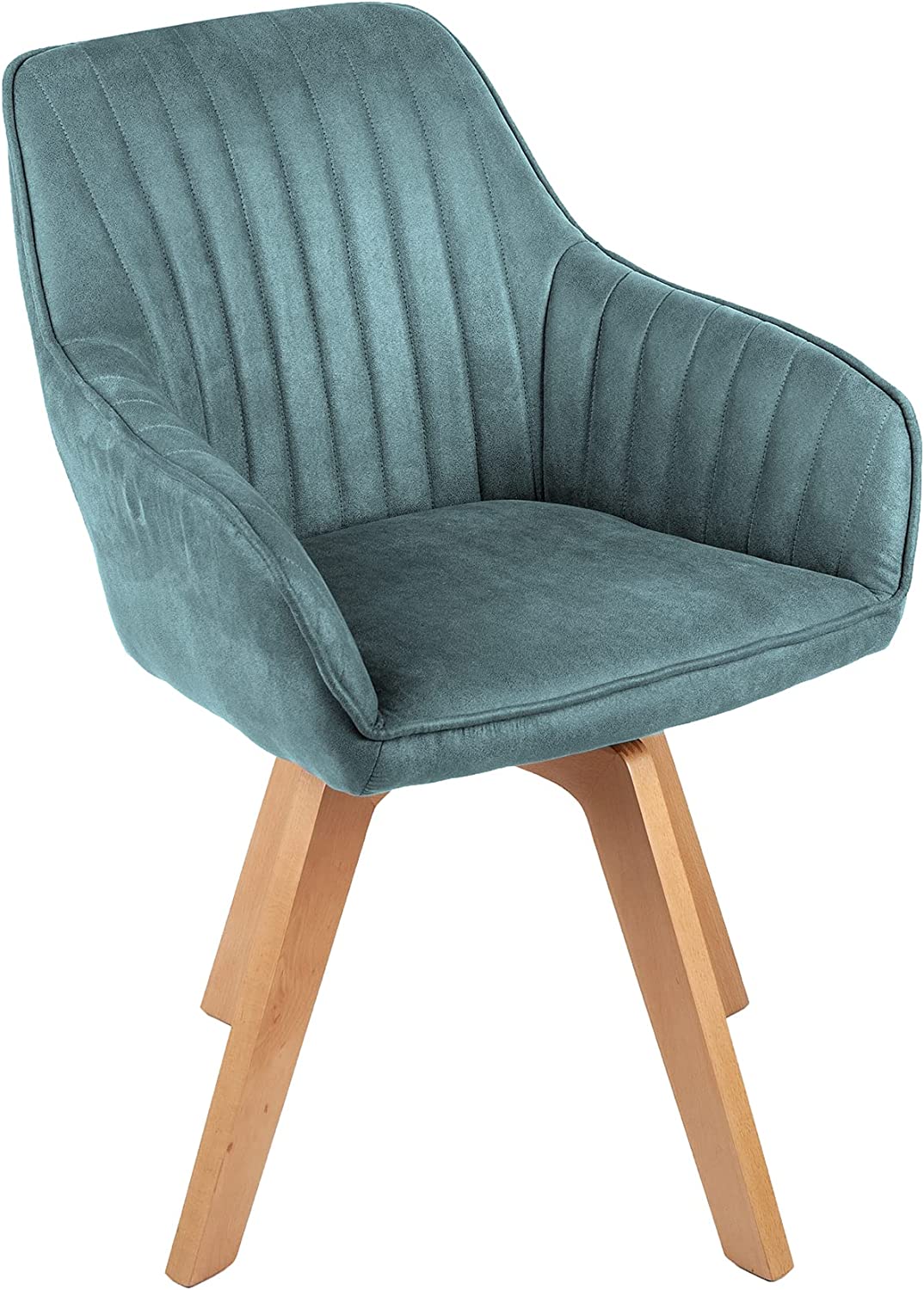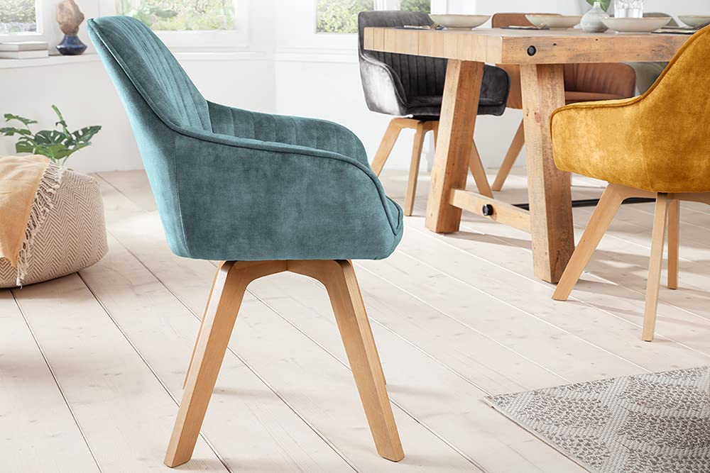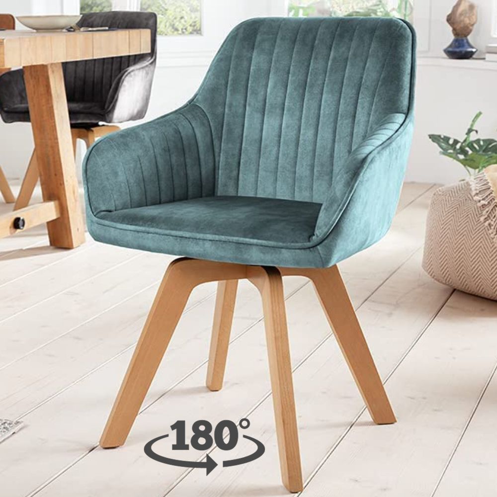Moderner Drehstuhl NOVO Samt petrol Buchenholz Beine Armlehnen