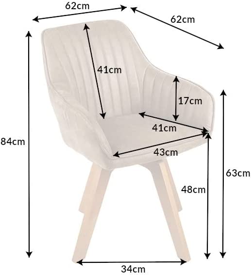 - Maße ca.: 62x83x62cm (BxHxT) - Sitzbreite 43cm - Sitzhöhe 48cm - Sitztiefe 41cm - Höhe Rückenlehne 41cm - Höhe Armlehne 17cm - Abstand Boden/Armlehne 63cm