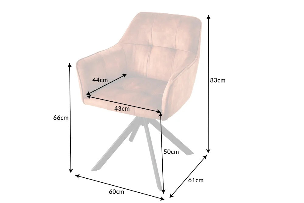 Ein Hauch von Exklusivität und Individualität kommt mit diesem Stuhl in dein Zuhause. Die Mischung aus hochwertigem Samtbezug (der Stoff ist auf min. 40.000 Scheuertouren getestet !) und modernen Metallbeinen wirkt sehr elegant. Durch die bequeme Polsterung und die komfortablen Armlehnen lädt dieser Stuhl zu einem langen Verweilen ein. Zusätzlich bietet sich die Möglichkeit die Sitzschale um 180° zu drehen, um danach aber auch immer wieder in die Ausgangsposition zurück zu kehren.