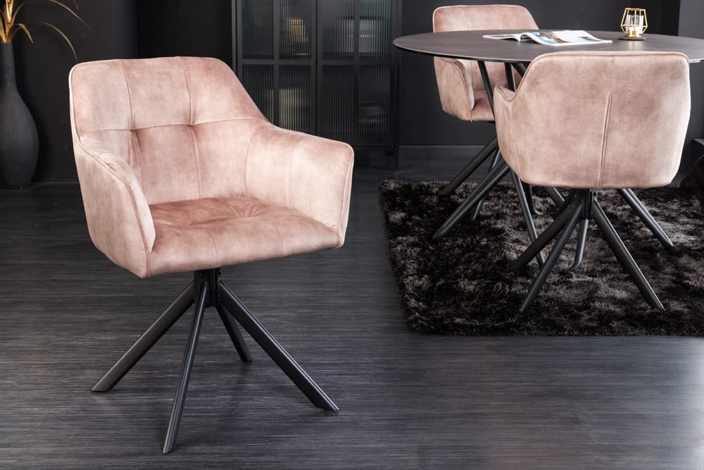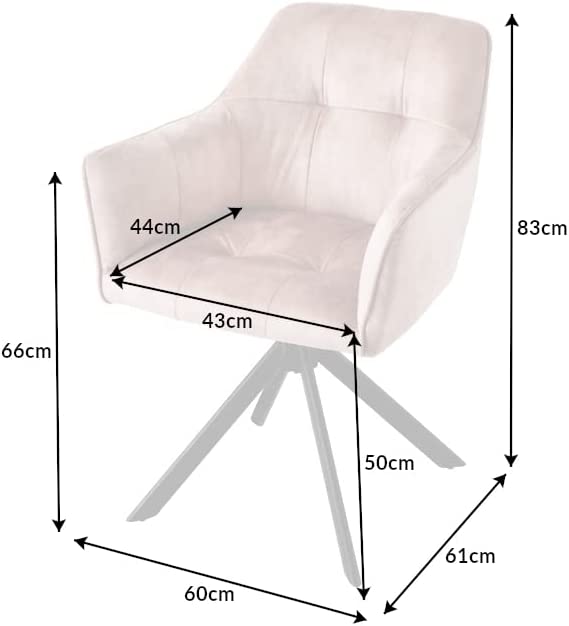 Ein Hauch von Exklusivität und Individualität kommt mit diesem Stuhl in dein Zuhause. Die Mischung aus hochwertigem Samtbezug (der Stoff ist auf min. 40.000 Scheuertouren getestet !) und modernen Metallbeinen wirkt sehr elegant. Durch die bequeme Polsterung und die komfortablen Armlehnen lädt dieser Stuhl zu einem langen Verweilen ein. Zusätzlich bietet sich die Möglichkeit die Sitzschale um 180° zu drehen, um danach aber auch immer wieder in die Ausgangsposition zurück zu kehren.