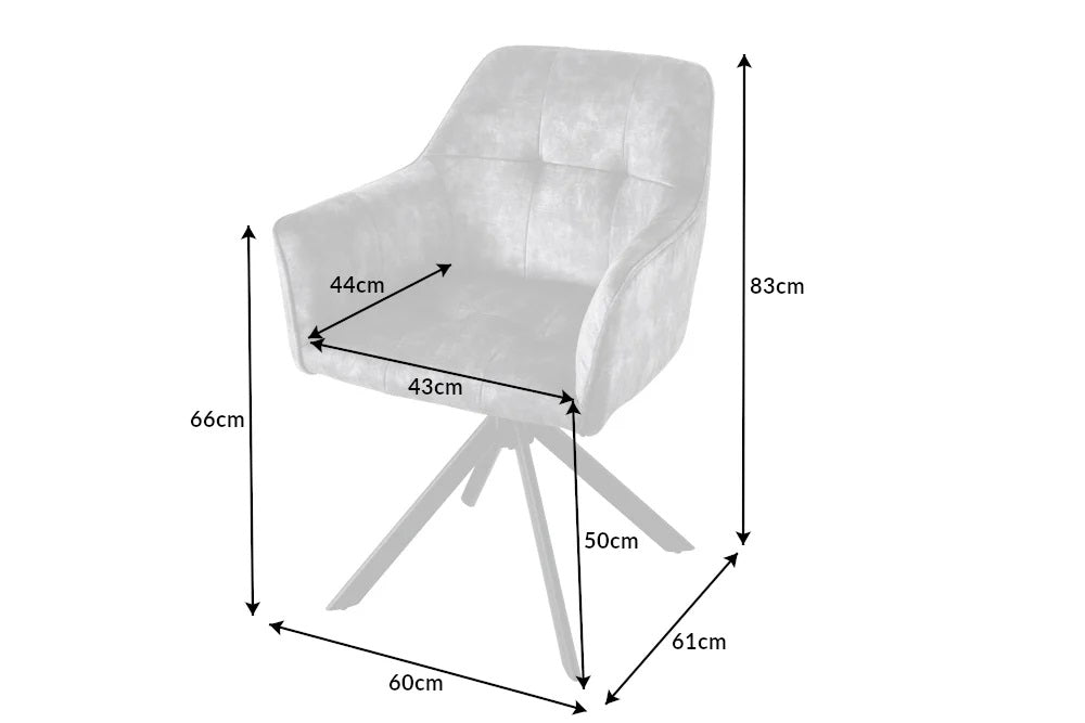 - Maße ca.: 60x83x61cm (BxHxT) - Sitzbreite 43cm - Sitzhöhe 50cm - Sitztiefe 44cm - Abstand Boden/Armlehne 66cm