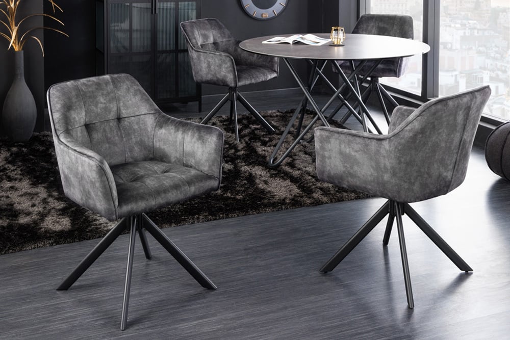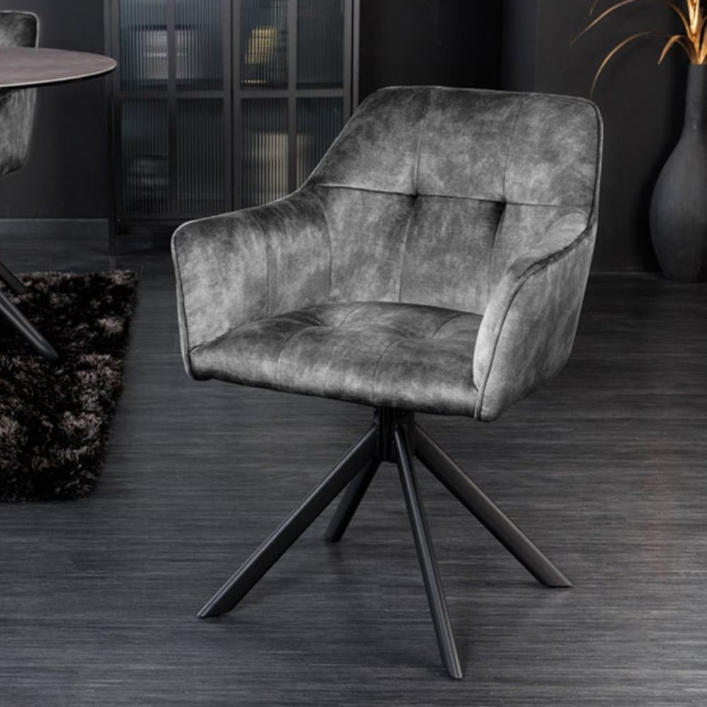 Moderner Drehstuhl ZIRA grau Samt Metallgestell