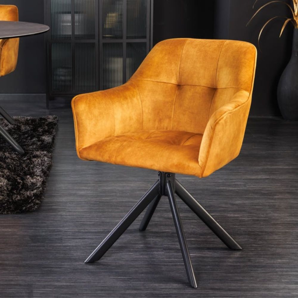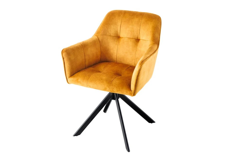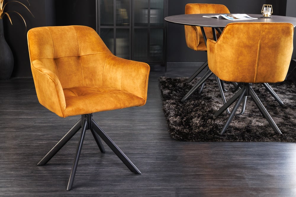 Moderner Drehstuhl ZIRA senfgelb Samt Metallgestell