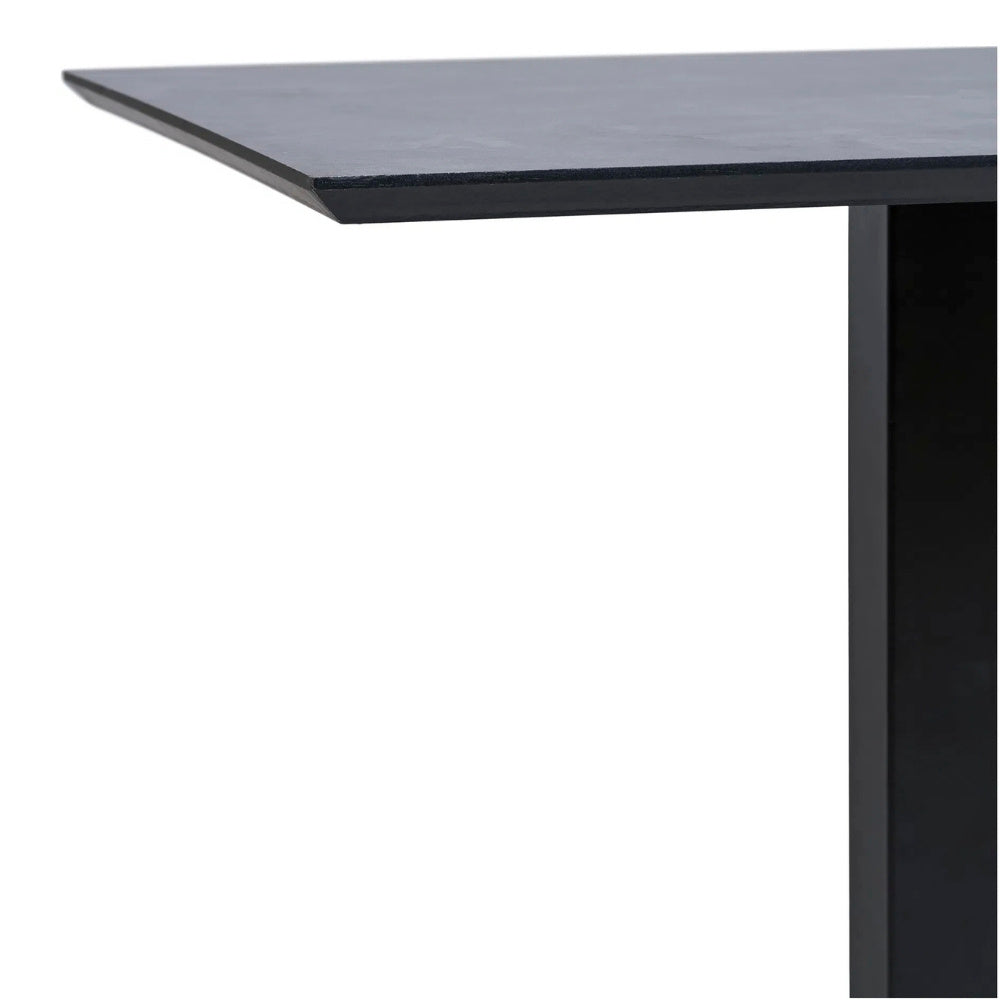 Die dunkle Tischplatte und der schwarze Fuß ergeben gemeinsam eine moderne Kombination, die von Dir mit unterschiedlichen Möbeln und Stilen kombiniert werden kann. Unser Tipp: Stühle mit schwarzen Beinen und einem modernen Bezug passen ganz hervorragend zu dem Tisch. Aber auch eine Hängelampe in Schwarz, oder in der Farbe der Stuhlbezüge ist eine stimmige Ergänzung für Deinen neuen Esstisch im Marmor-Look.
