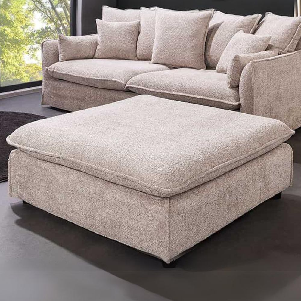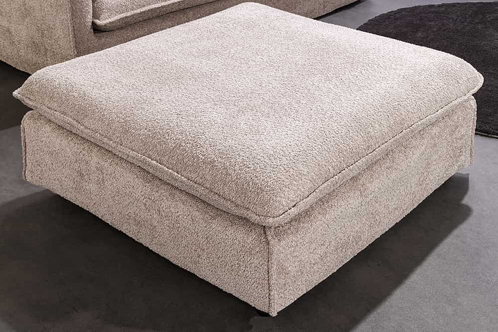 Moderner Hussenhocker PARADISO 100cm Bouclé champagner Federkern