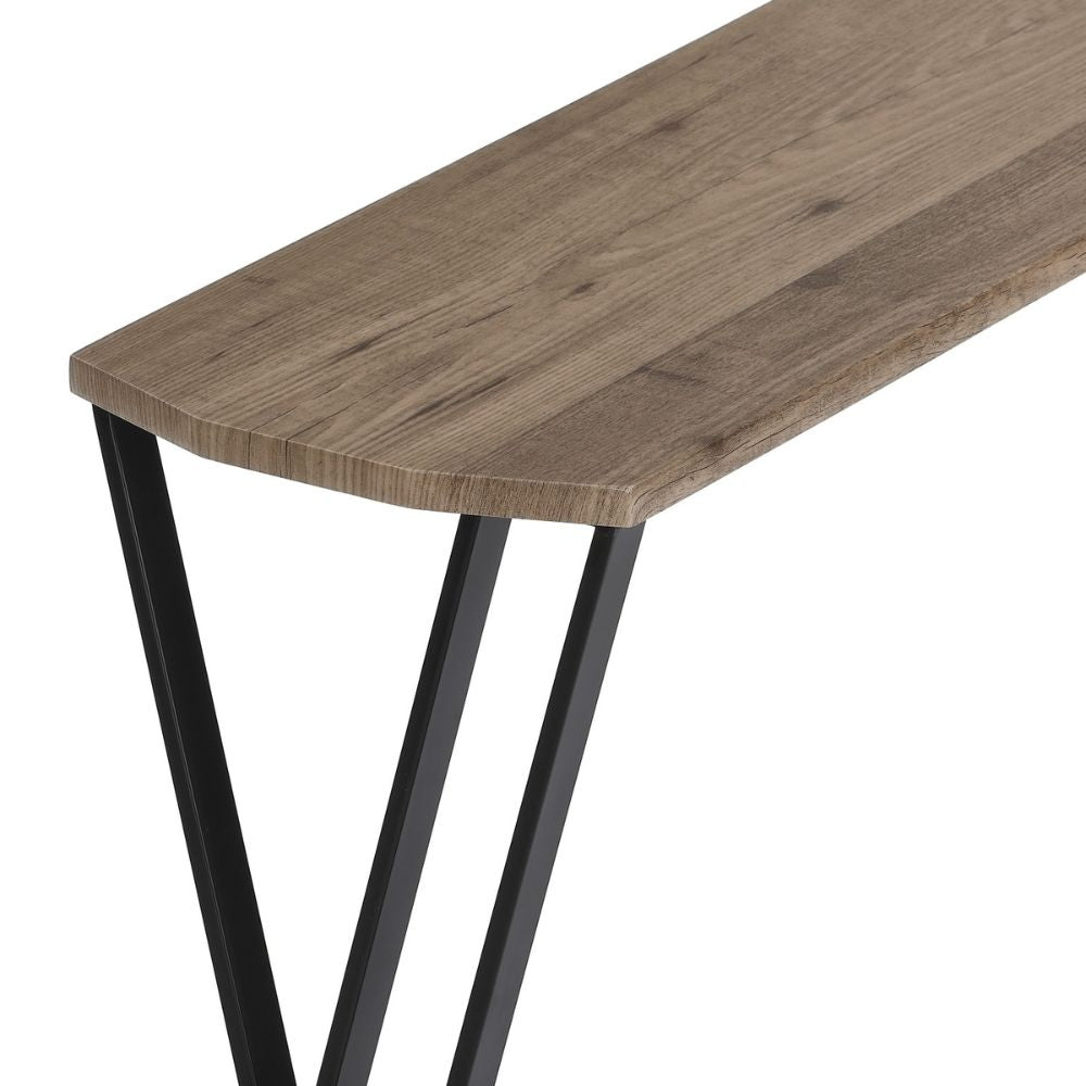 Diese Konsole besticht durch ihre klare Linienführung und die harmonische Verbindung von Materialien und industriellem Flair. Mit einer Breite von 100cm bietet sie Dir ausreichend Platz für deinen Laptop, und/oder Utensilien, die einfach mal abgelegt werden müssen bzw. Deko-Objekten, die Deine Umgebung verschönern sollen. Das robuste Metallgestell in Schwarz sorgt für Stabilität und verleiht dem Schreibtisch einen modernen Touch.
