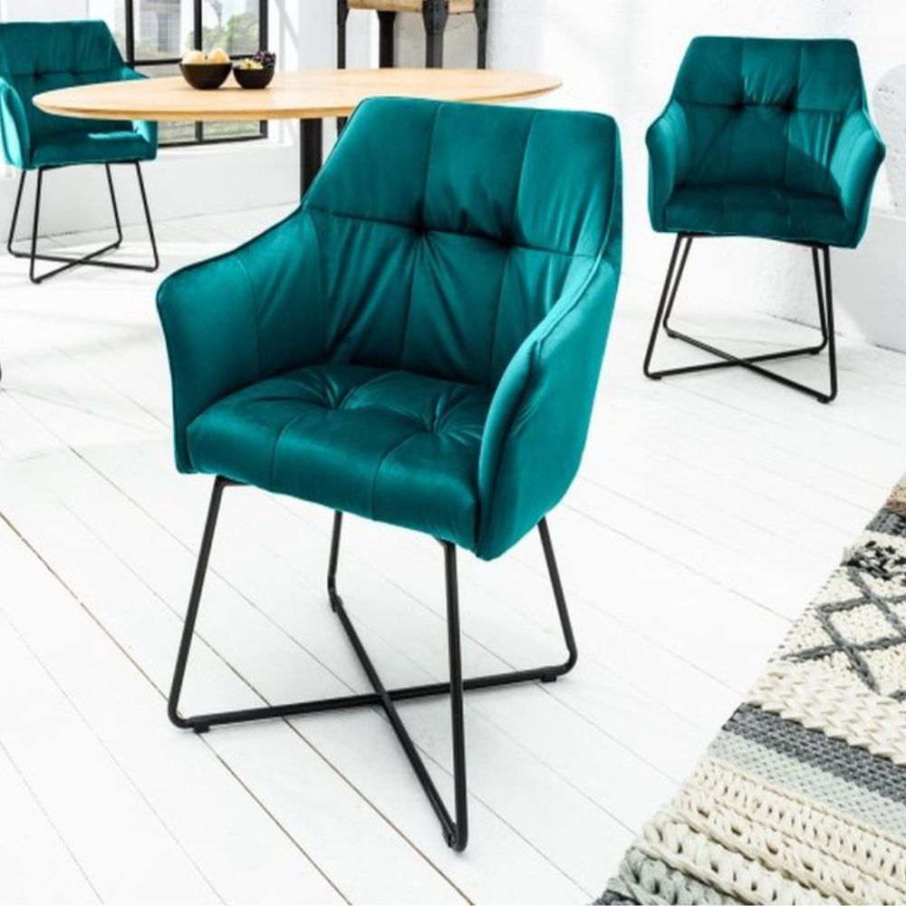 Moderner Samt Stuhl ZIRA türkis mit Armlehne