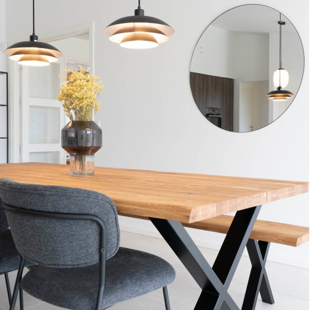 - Der runde Rahmen in Schwarz verleiht dem Spiegel ein modernes Aussehen und macht ihn zu einem echten Hingucker.