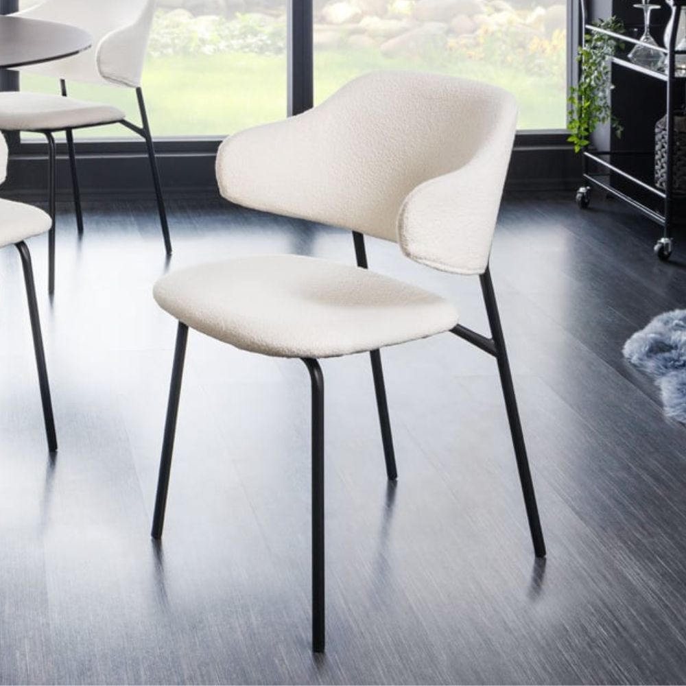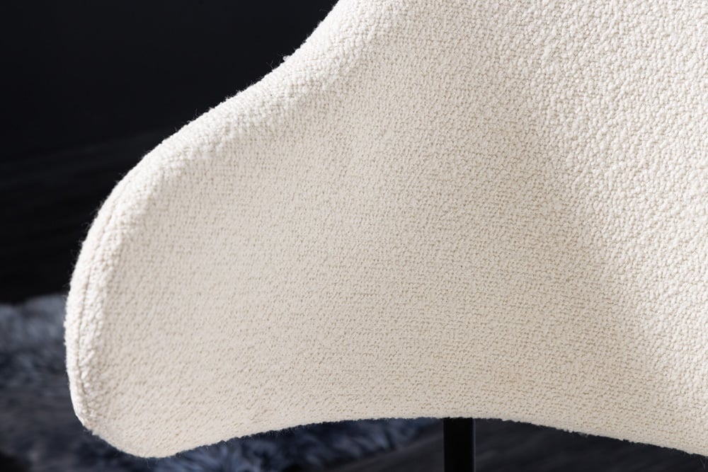Designstuhl MODA in Weiss mit Bouclé-Bezug und schwarzen Metallbeinen