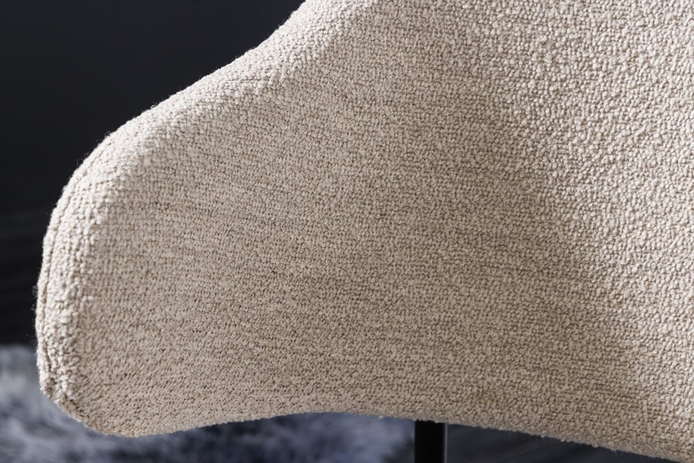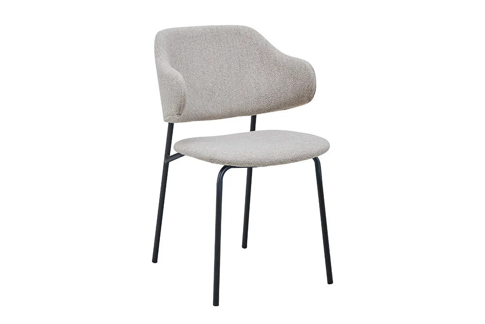 Designstuhl MODA in Grau-Greige mit Bouclé-Bezug und schwarzen Metallbeinen