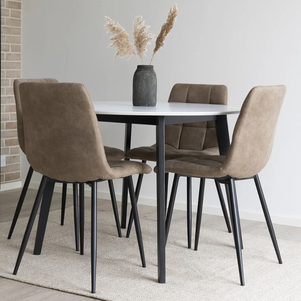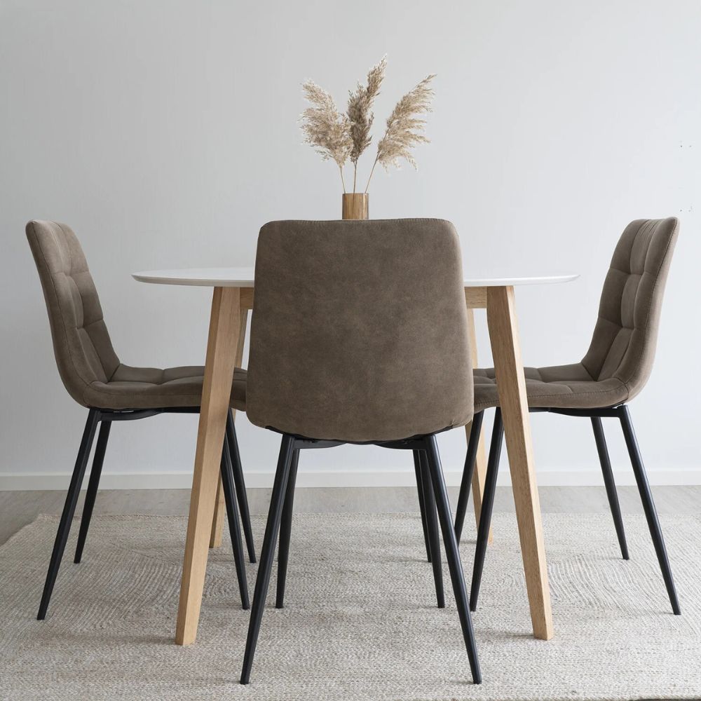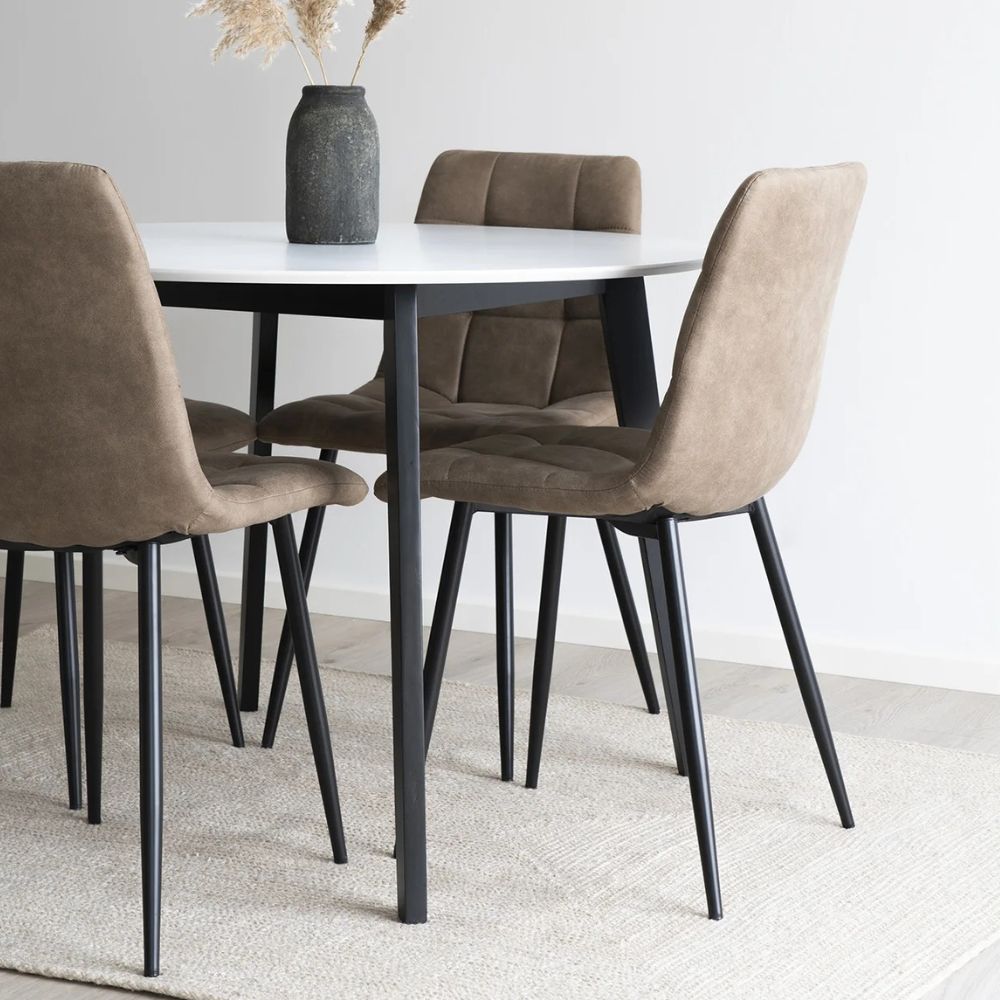 Trotz des extravaganten Bezugs aus Mikrofaser kannst Du den Stuhl mühelos mit ganz unterschiedlichen Stilen und Möbeln kombinieren. Der Stuhl passt zu einem Massivholz-Esstisch genau so gut wie zu einem modernen Keramiktisch.