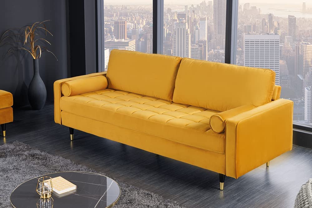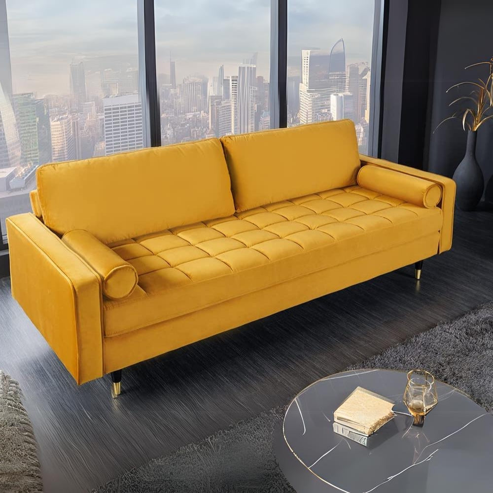 Modernes 3er Sofa 220cm COMFORT senfgelb Samt Federkern
