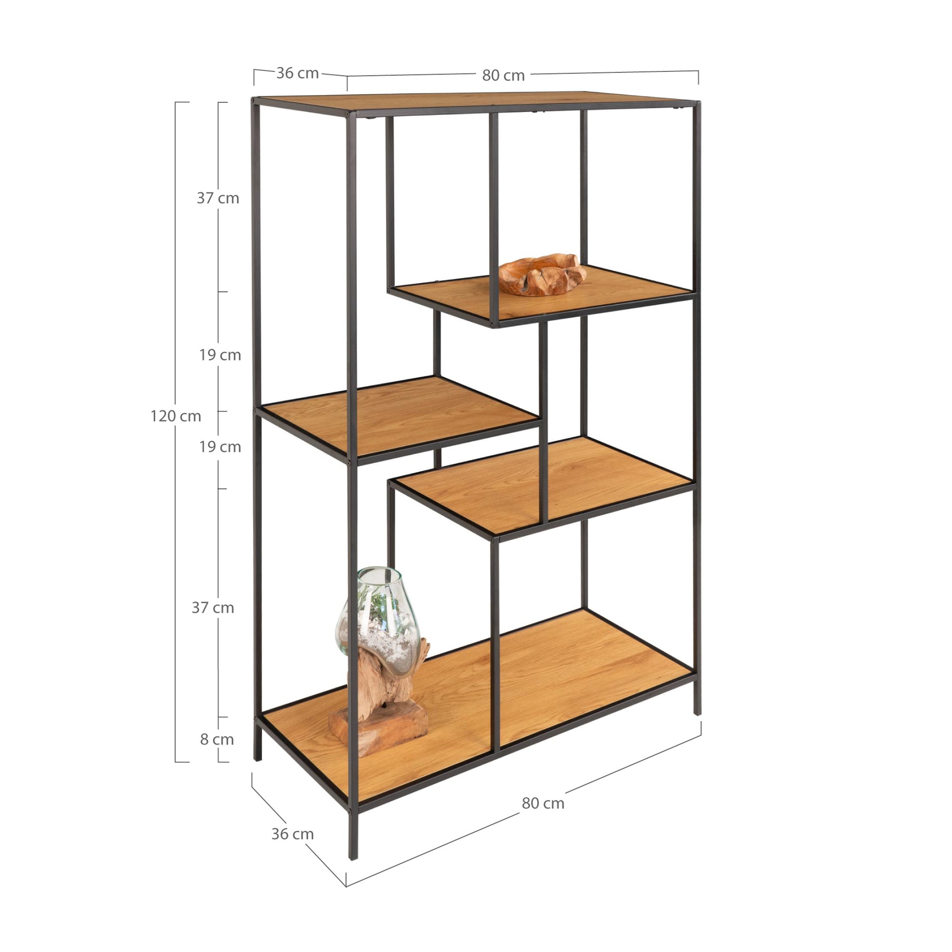 Modernes Regal LEVEN schwarz + Eichelook ca.36x80x120 cm Retro-Design