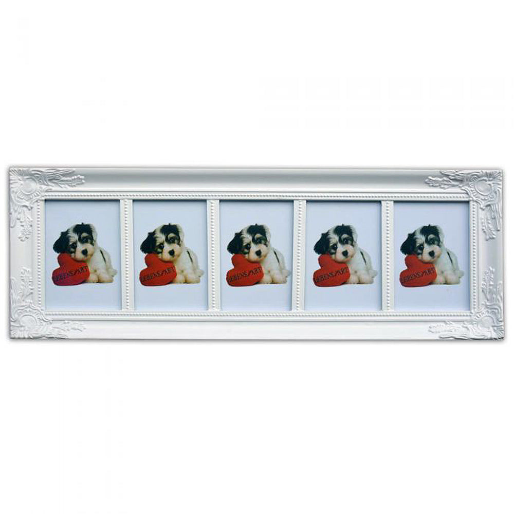 Multi-Fotorahmen BEATRICE / Barock Weiß 5 Fotos á 15x10cm