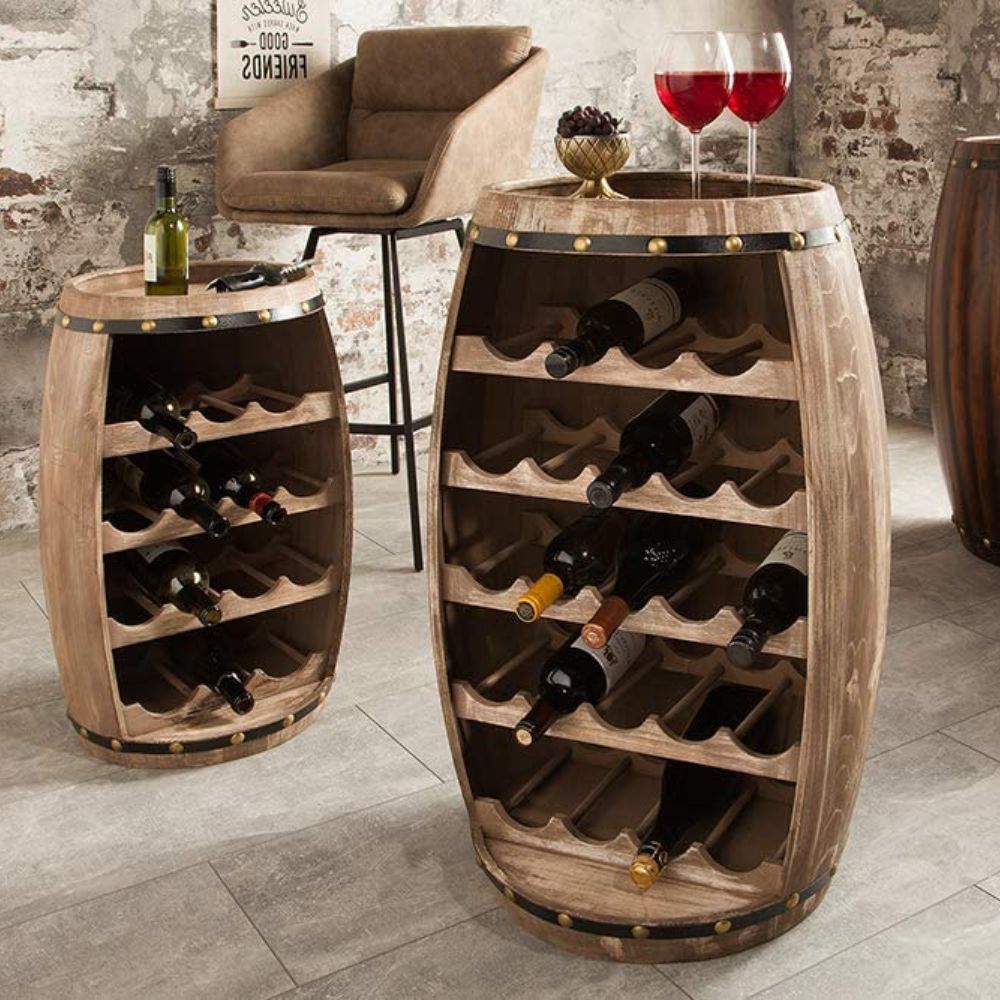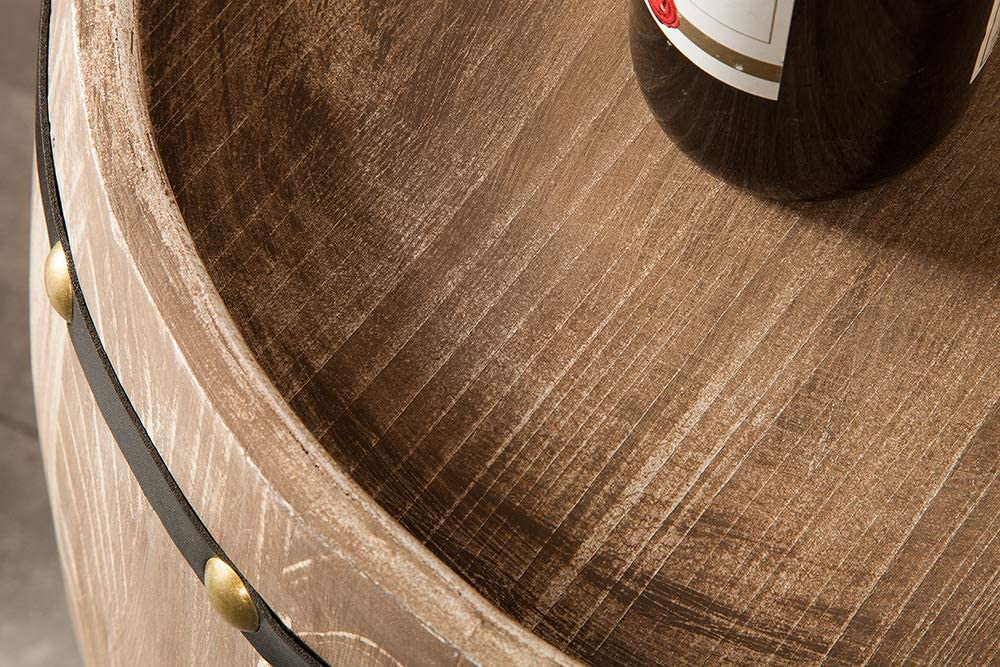 Uriger geht es doch kaum noch ..... Das einem echten Weinfass nachempfundene Flaschenregal ist ein richtiger Hingucker. Mit Liebe zum Detail wurde dieser Artikel entworfen, um Dein Zuhause noch gemütlicher zu machen. Die Ziernieten und das Design der Holzoberfläche wirken wunderbar authentisch und die natürliche Maserung macht jedes Regal zum Unikat.