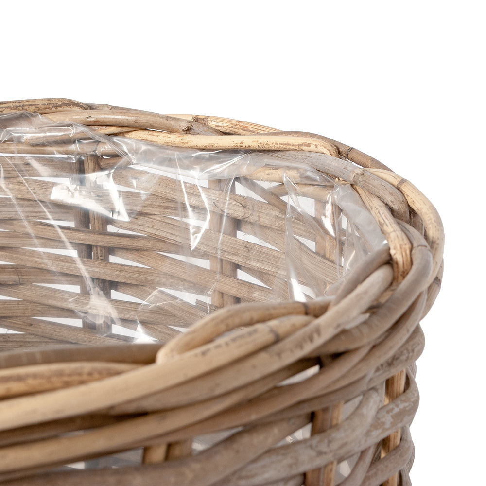 Pflanzkorb GOOCI mit Kunststoff-Inlay in der Farbe Natural. Handgeflochten aus besonders robustem Rattan (Kubu Grey) verschönert dieser Artikel jedes Ambiente.