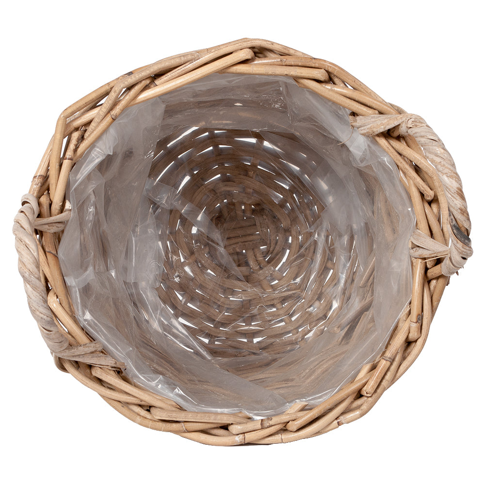 Pflanzkorb VERONA-3 mit Kunststoff-Inlay und Henkeln. Handgeflochten aus besonders robustem Rattan (Kubu Grey) verschönert dieser Artikel jedes Ambiente.