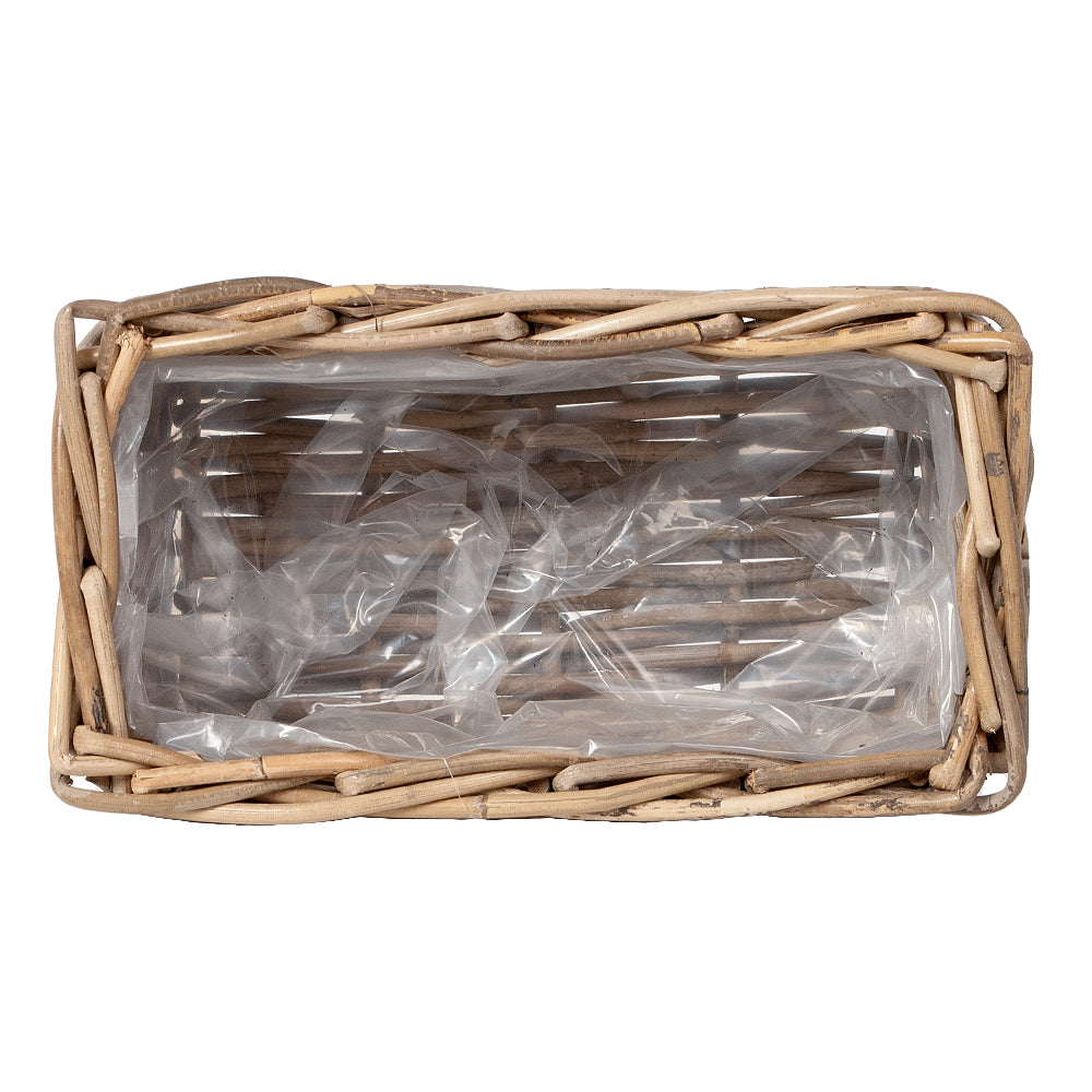 Pflanzkorb VERONA-Rechteckig mit Kunststoff-Inlay. Handgeflochten aus besonders robustem Rattan (Kubu Grey) verschönert dieser Artikel jedes Ambiente.