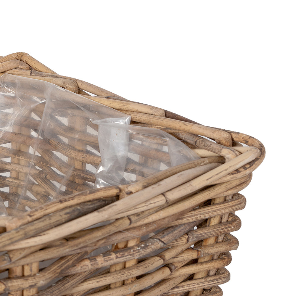 Pflanzkorb VERONA-Rechteckig mit Kunststoff-Inlay. Handgeflochten aus besonders robustem Rattan (Kubu Grey) verschönert dieser Artikel jedes Ambiente.