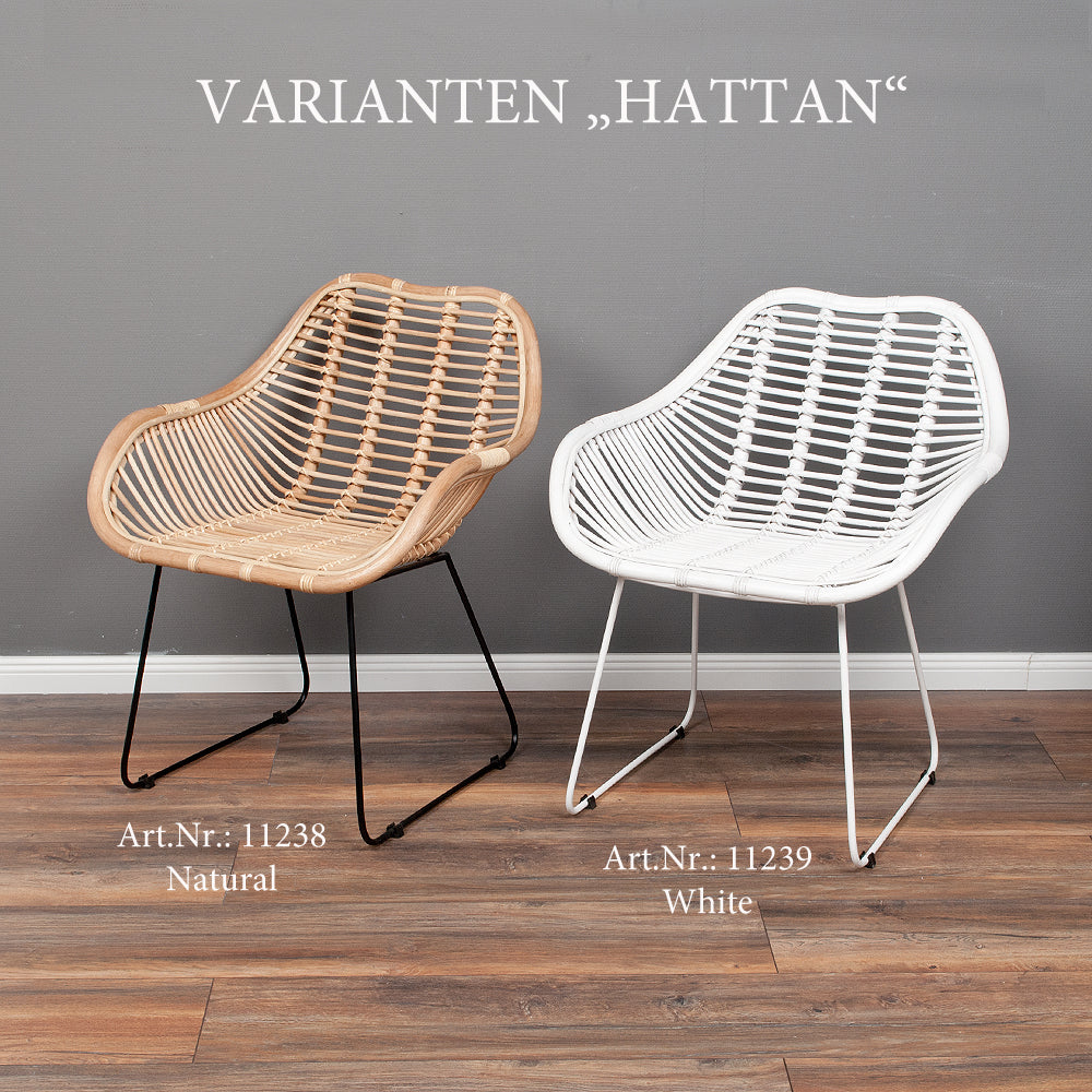Der stylische Armlehner HATTAN ist aus Rattan und Metall gefertigt. Geschwungene Linie und das Zusammenspiel der Materialien ergeben eine toll anzusehende, bequeme Sitzgelegenheit, Viel Spaß beim Relaxen und Entspannen. Auch in einer anderen Farbe (White) verfügbar (siehe Art. Nr. 11239).