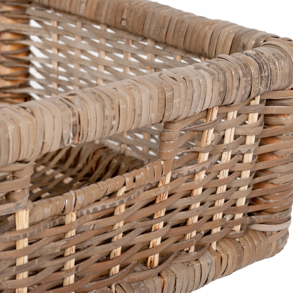 Handgeflochtener Korb CESTA-Med aus Rattan. Ein praktischer und zugleich dekorativer Artikel, der Ordnung schafft für ihre Regale, Kommoden, Schränke usw. Unser Angebot bezieht sich auf einen Korb! Der Griff befindet sich auf der längeren Seite des Korbes.