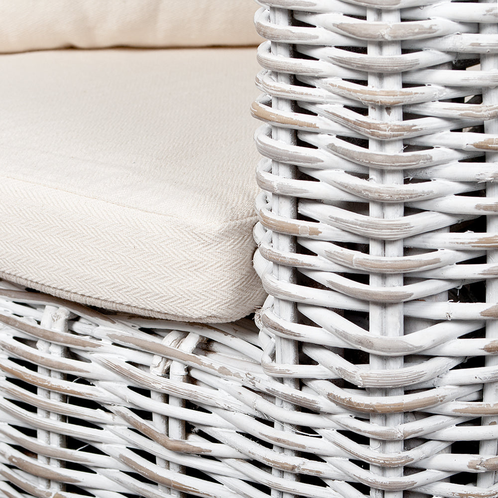 Formschöner, bequemer Rattan-Sessel CIRCLE in der Farbe White Wash. Der Sessel CIRCLE - aus Rattan gefertigt - eignet sich für viele Wohnbereiche. Das passende Sitzkissen und ein Dekokissen ist in diesem Angebot inklusive. Gekonnt kombiniert, wird dieser Sessel in Ihrem Wintergarten, Esszimmer oder einer anderen Räumlichkeit eine wahres Highlight ihrer Einrichtung darstellen.