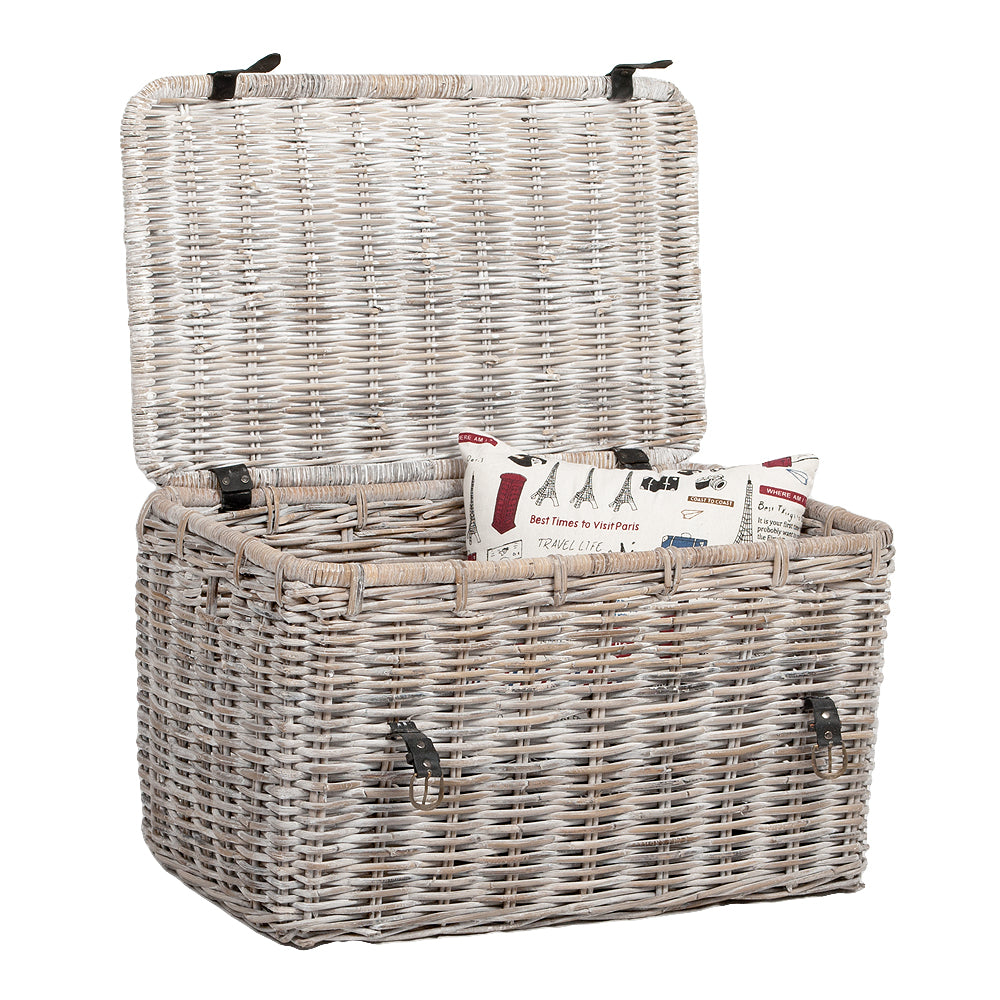 Rattan Truhe RESSY White Wash ca.80cm Couchtisch