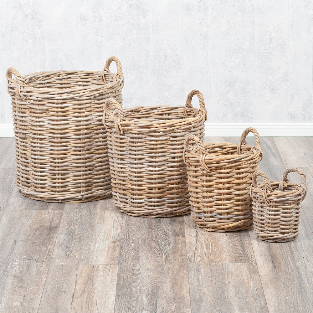 Natur Rattankorb BAKUL rund Grey 50cm Pflanzkorb Inlay Griffe