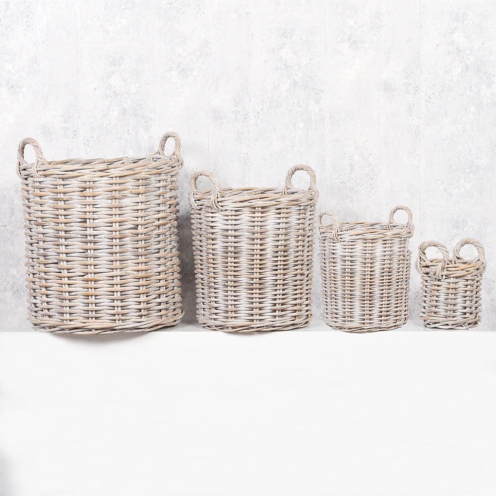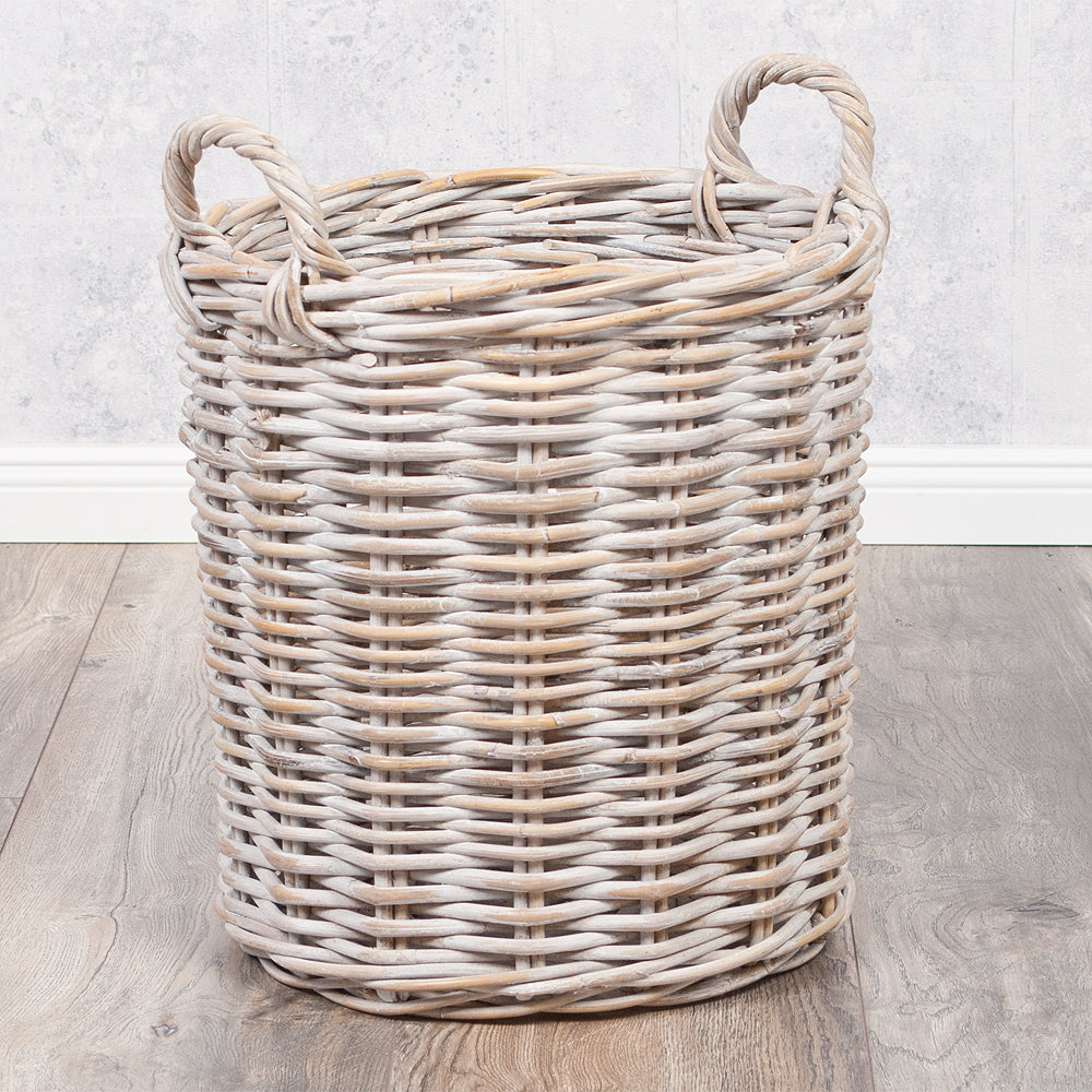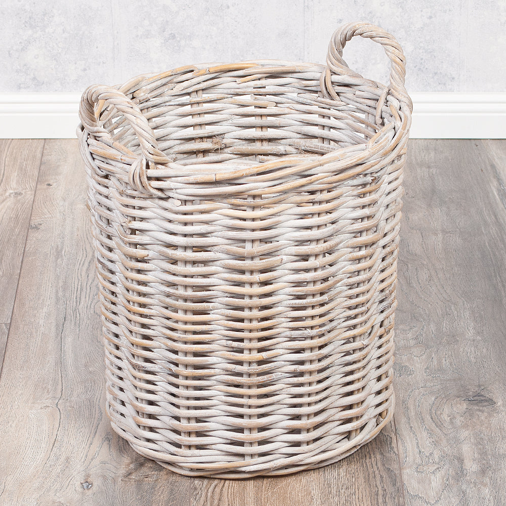 Natur Rattankorb BAKUL rund White Wash 30cm Pflanzkorb Inlay Griffe