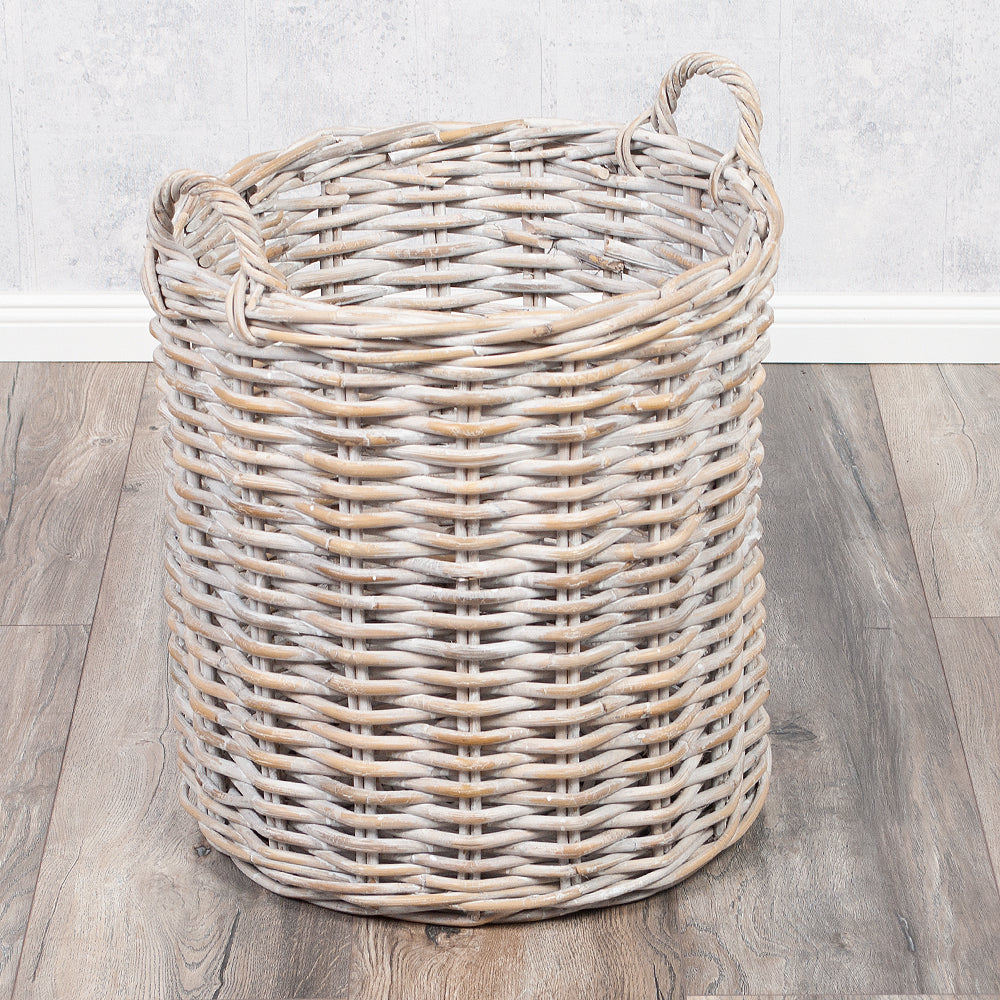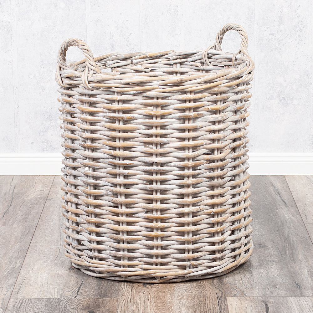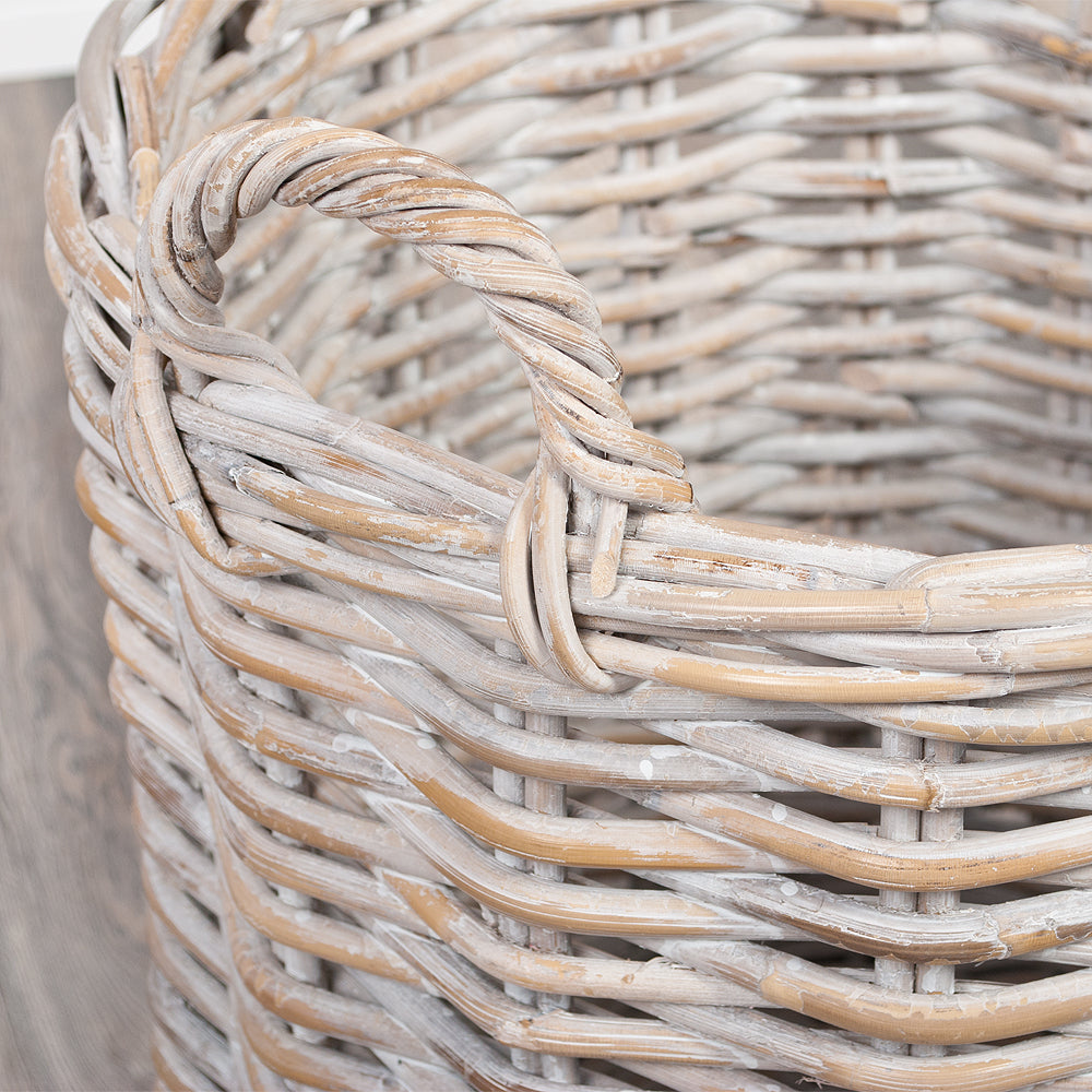 Natur Rattankorb BAKUL rund White-Wash 50cm Griffe Pflanzkorb Inlay