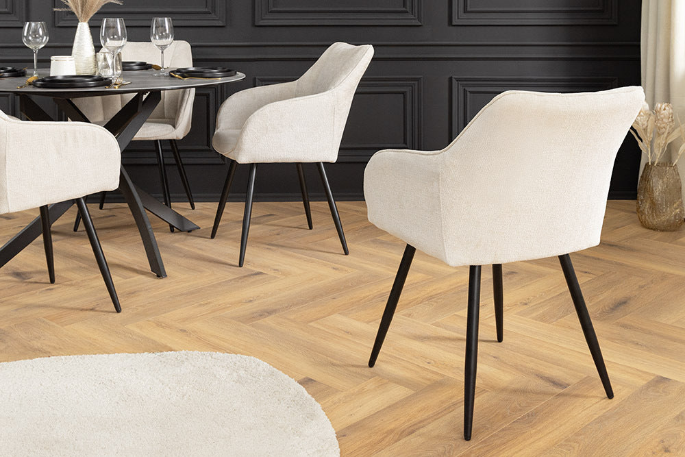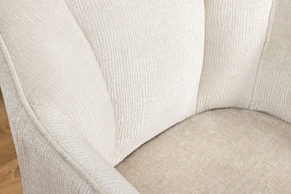 Setze ein echtes Design-Statement in DEINEM Zuhause: Mit dem drehbaren Retro-Stuhl PAPILLON in edlem Beige und mit angesagtem Chenille-Bezug bringst DU Komfort und Stil auf ein neues Level. Die schwarzen Metallbeine sorgen für einen modernen Kontrast und machen diesen Stuhl zum Highlight in jedem Raum.