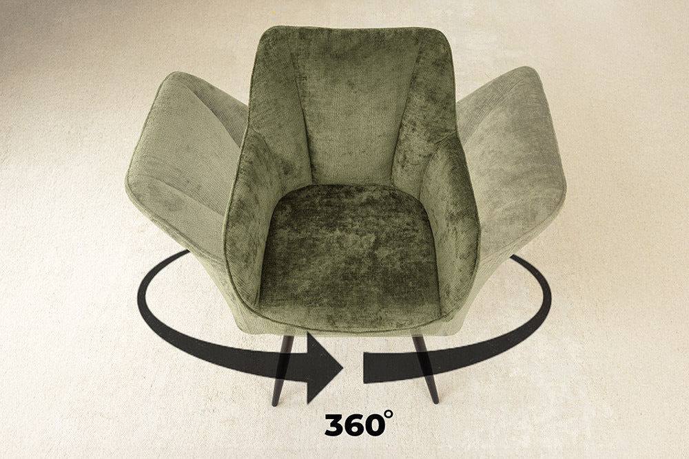 360° drehbar: Genieße maximale Flexibilität – ob am Esstisch, im Home-Office oder als stylischer Akzentstuhl.