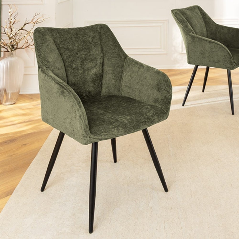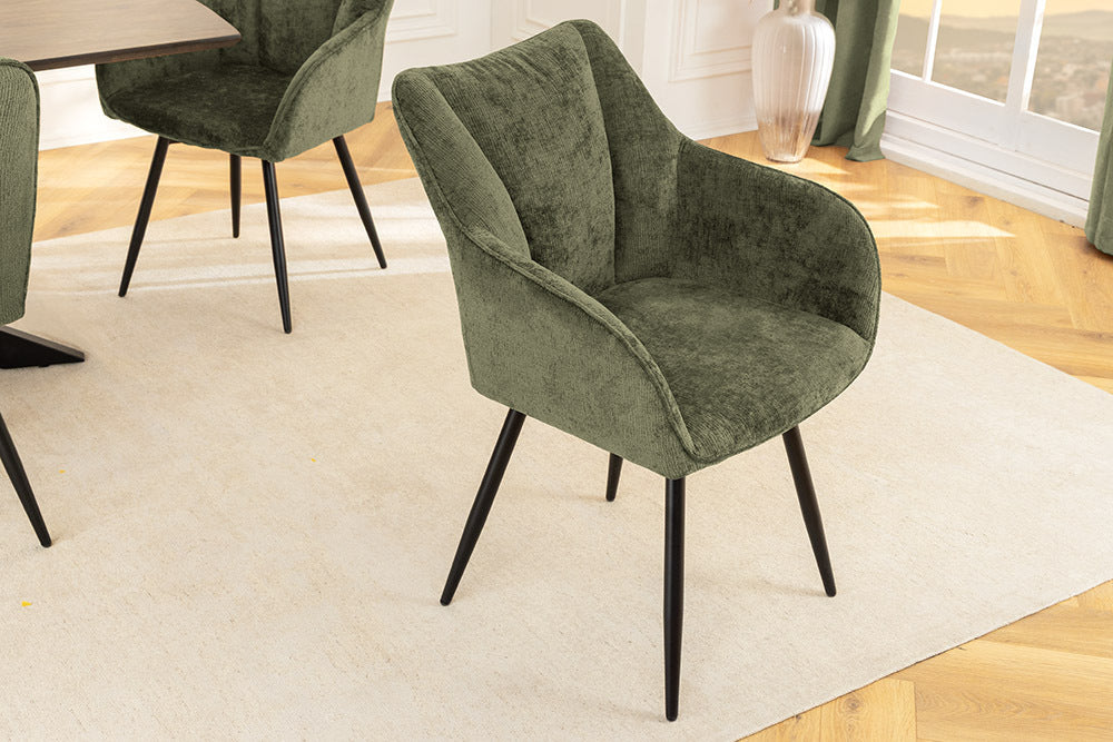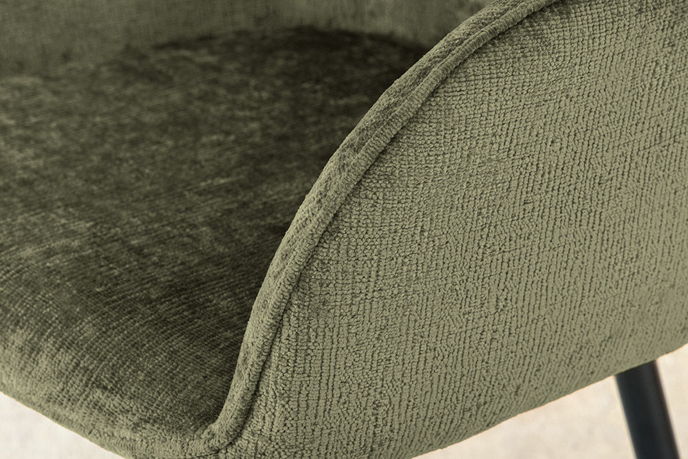 Setze ein echtes Design-Statement in DEINEM Zuhause: Mit dem drehbaren Retro-Stuhl PAPILLON in edlem Grün und mit angesagtem Chenille-Bezug bringst DU Komfort und Stil auf ein neues Level. Die schwarzen Metallbeine sorgen für einen modernen Kontrast und machen diesen Stuhl zum Highlight in jedem Raum.