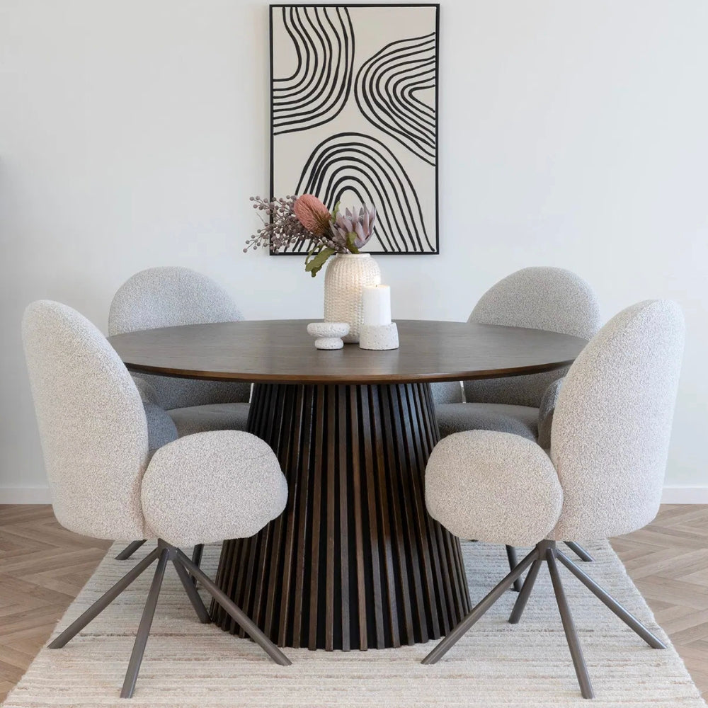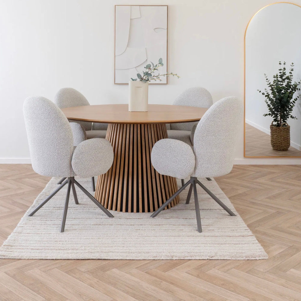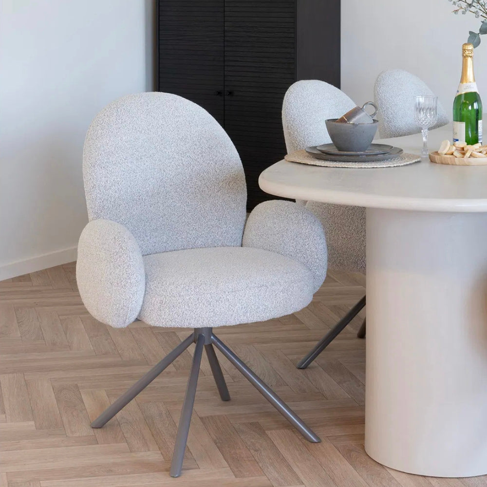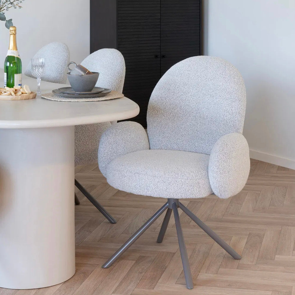 SOPHIE – Drehbarer Retro-Stuhl in Sand Bouclé – wo Komfort auf Charakter trifft