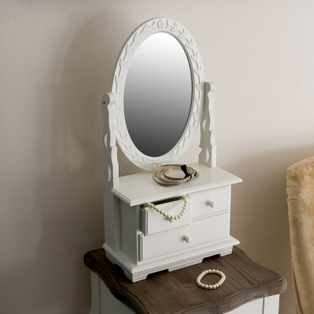 Romantische Spiegel Minikommode NANDO weiss H50cm