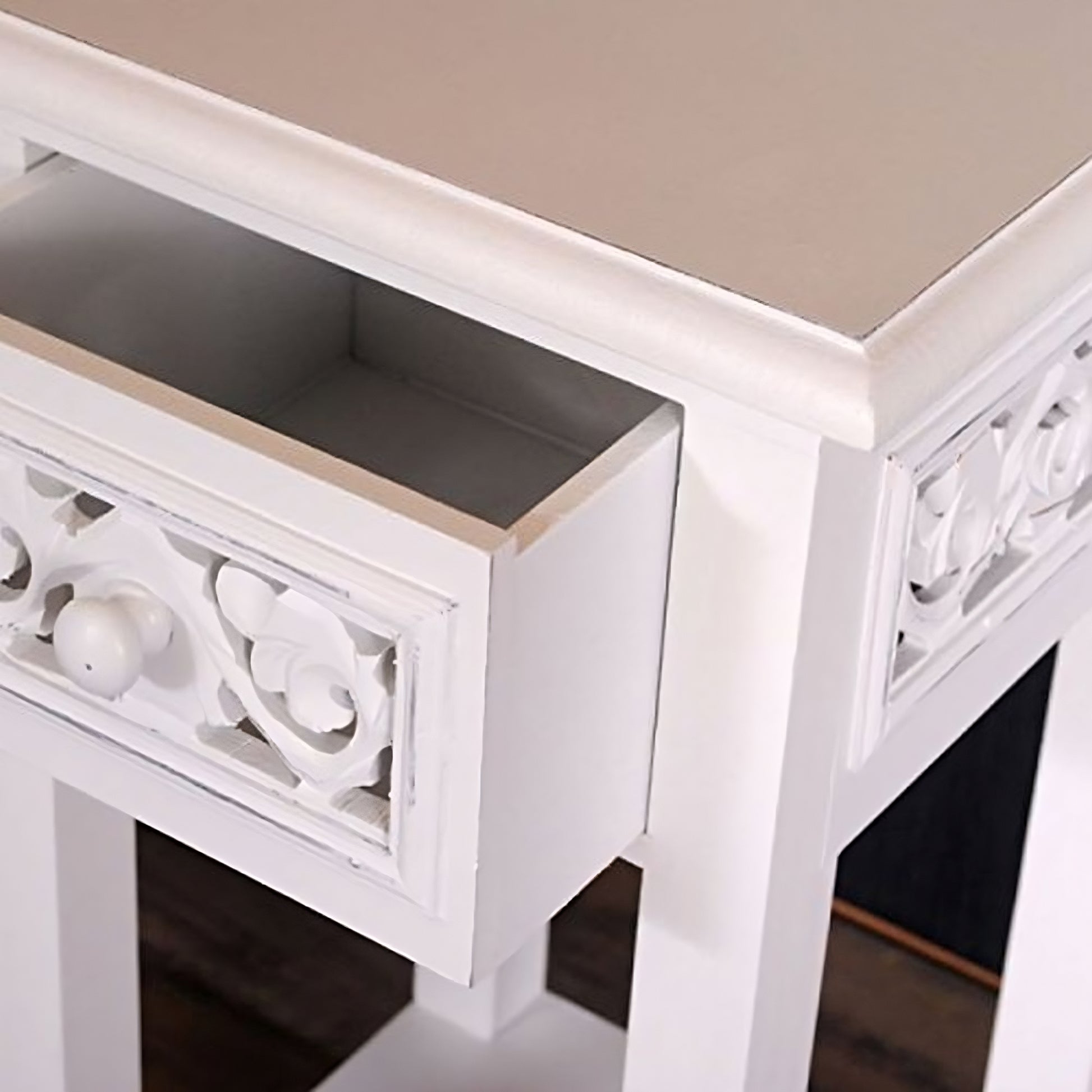 Hier nochmal einige Details zum Telefontisch NADJA mit 1 Schublade: