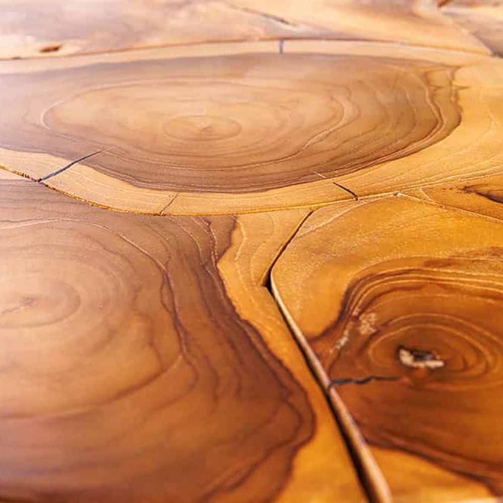 - Runde Tischplatte aus Teakholz mit lebendiger Maserung