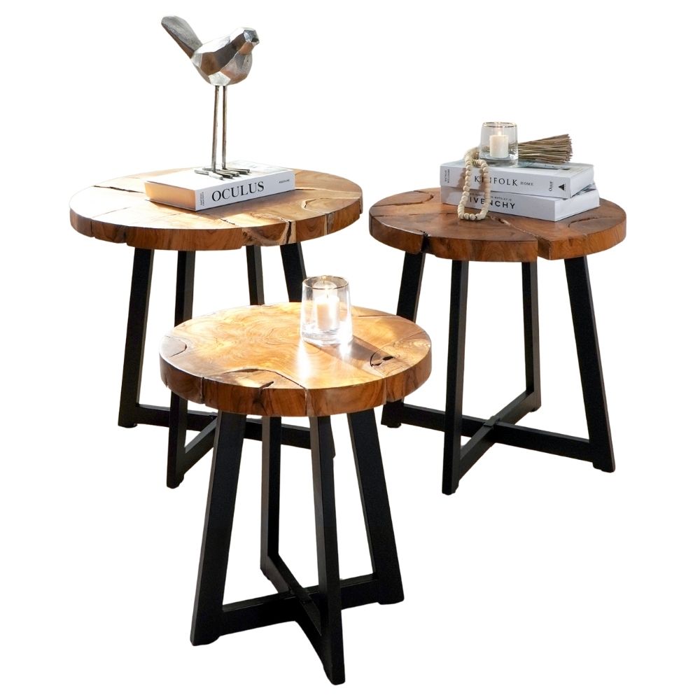 Runder Massivholz Couchtisch BAGIAN 80cm Teak natural Metall