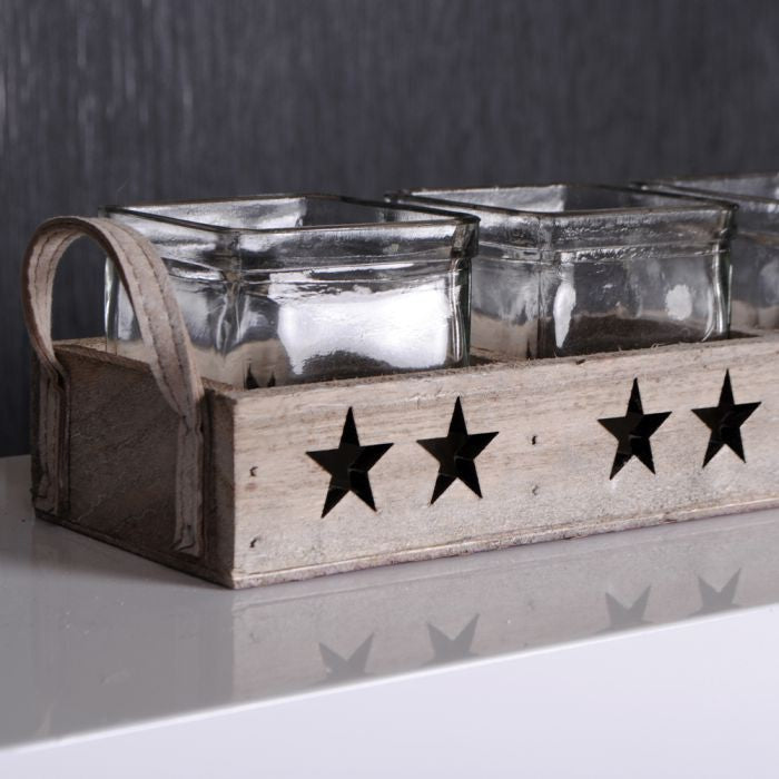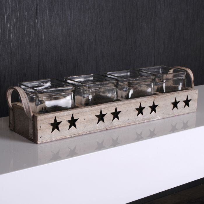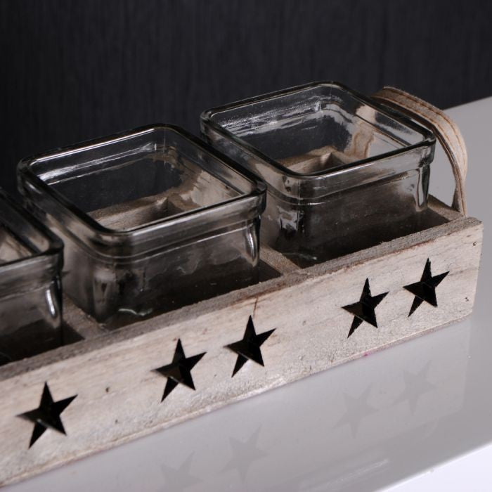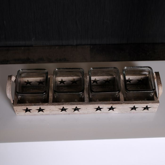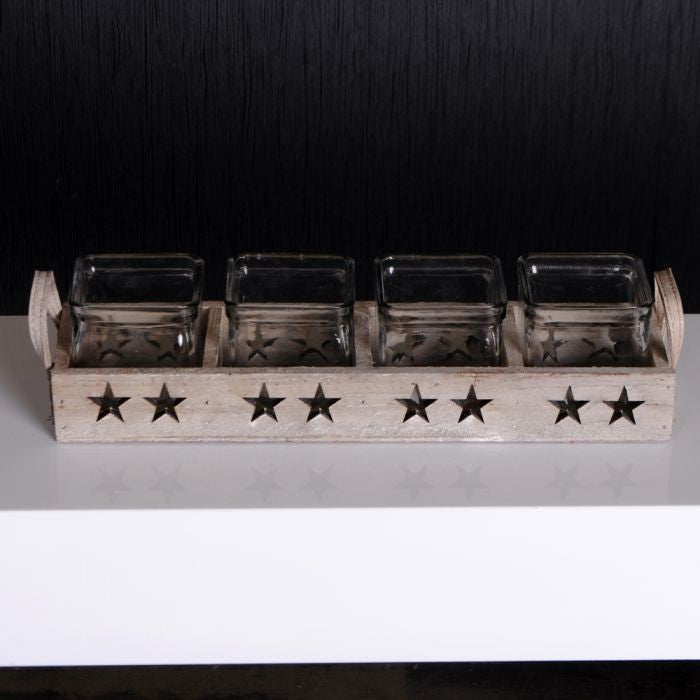 - Langes Kerzentablett aus Holz mit 4 Gläsern