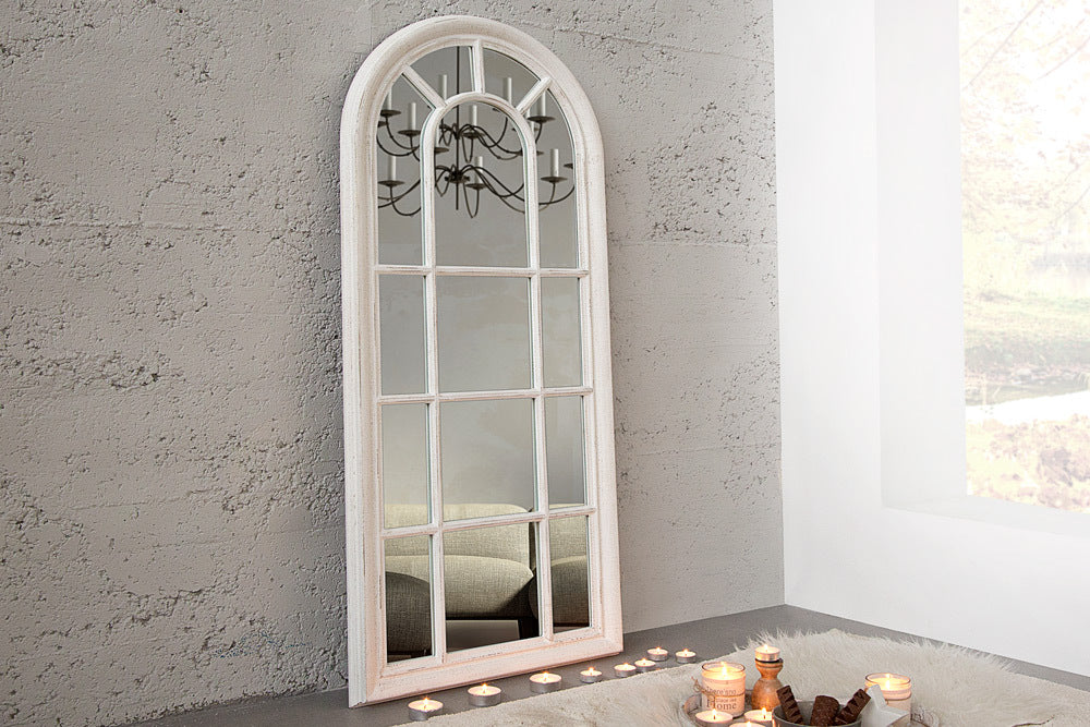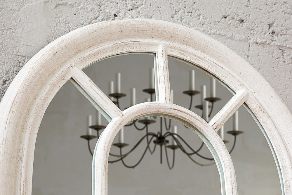 Shabby Chic Rundbogen-Fenster-Spiegel 140cm weiss-antik Landhaus