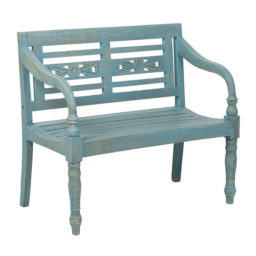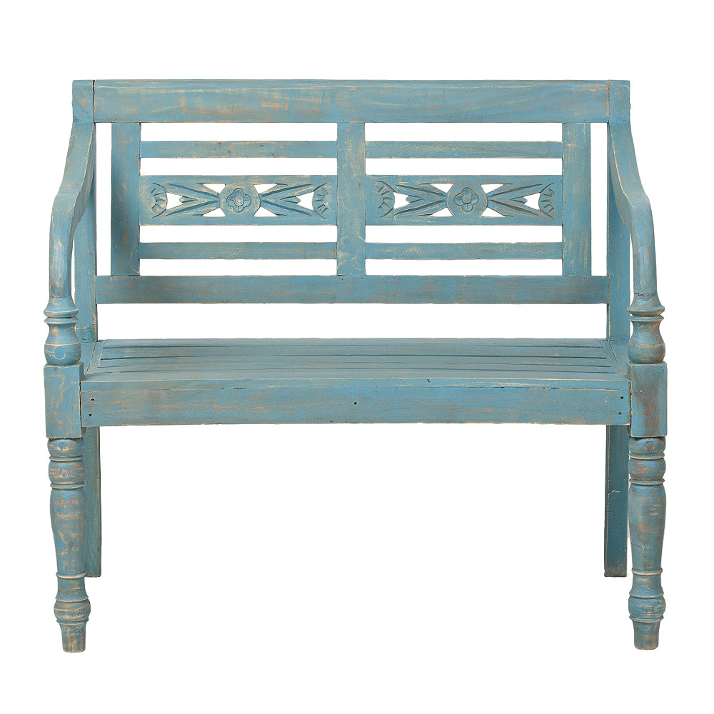 Sitzbank CHRISTOS Blue-Washed 100cm Mahagoni
