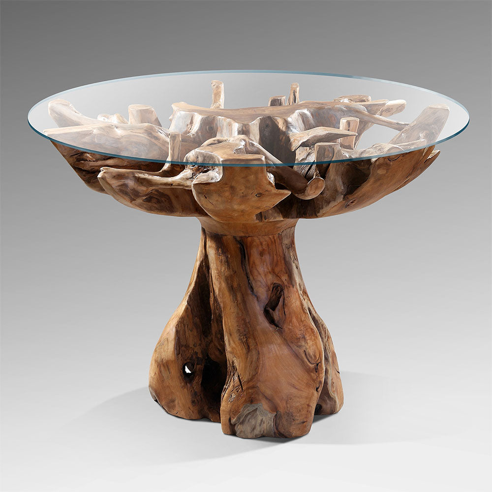 Esstisch ASPIRE aus massivem Teakwurzelholz. Dieser unverwechselbare Esstisch ASPIRE besticht durch absolute Exklusivität, da jeder Baum unterschiedlich in seiner Farbgebung, Form, Maserung und Beschaffenheit ist. Ein wunderschönes Naturprodukt, in Handarbeit gefertigt, das garantiert DER Blickfang in Ihrem zu Hause wird. Die passende Glasplatte ist im Angebot inklusive.