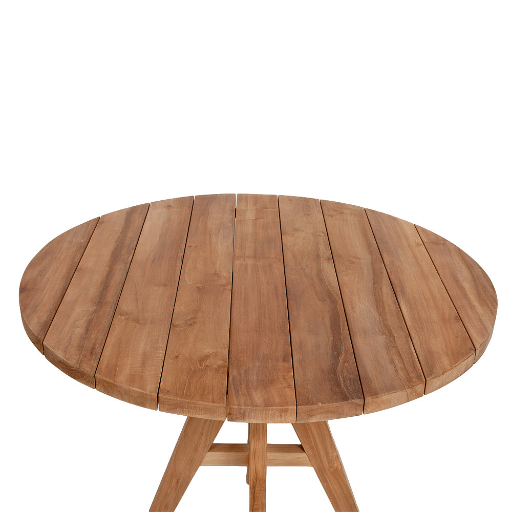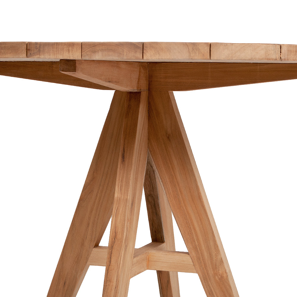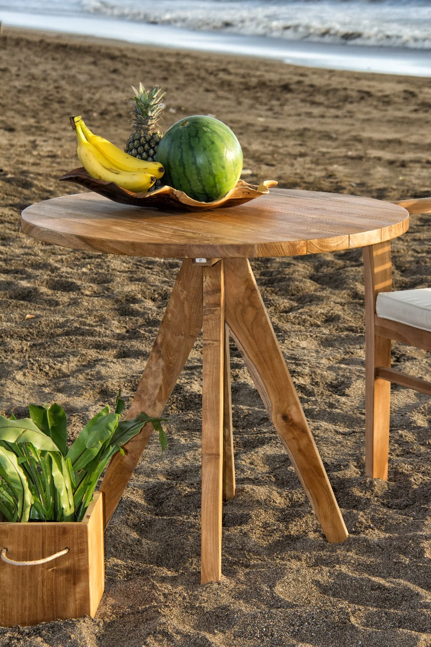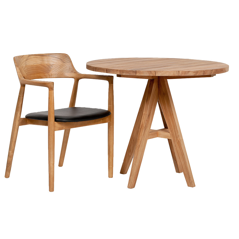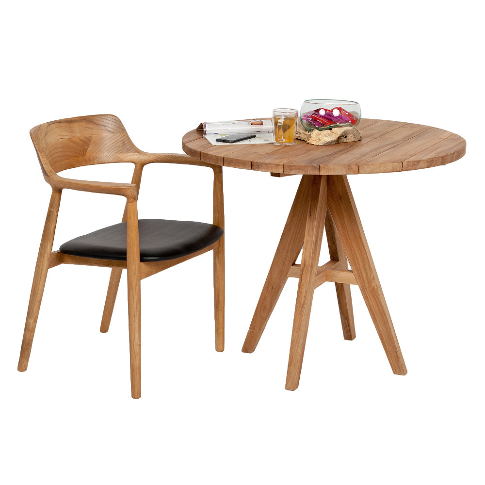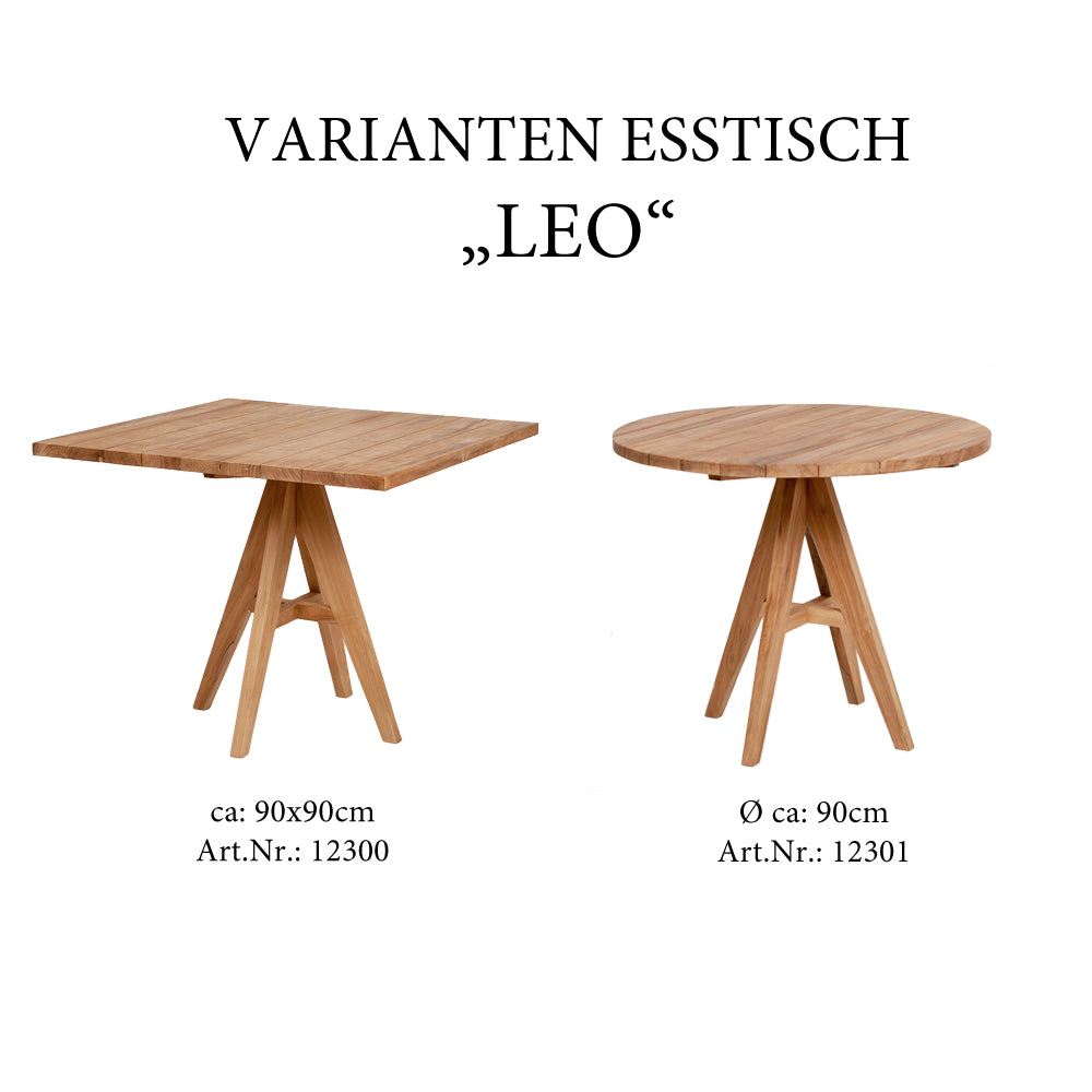 Esstisch LEO-rund aus Teak im modernen Design. Dieser unverwechselbare Tisch LEO-rund besticht durch seine schlichte und doch beeindruckend schöne Form. Besonders gut geeignet für kleine Räume, egal ob in der Küche, dem Esszimmer oder dem Wohnbereich. Ein Blickfang, den sie sich nicht entgehen lassen sollten.
