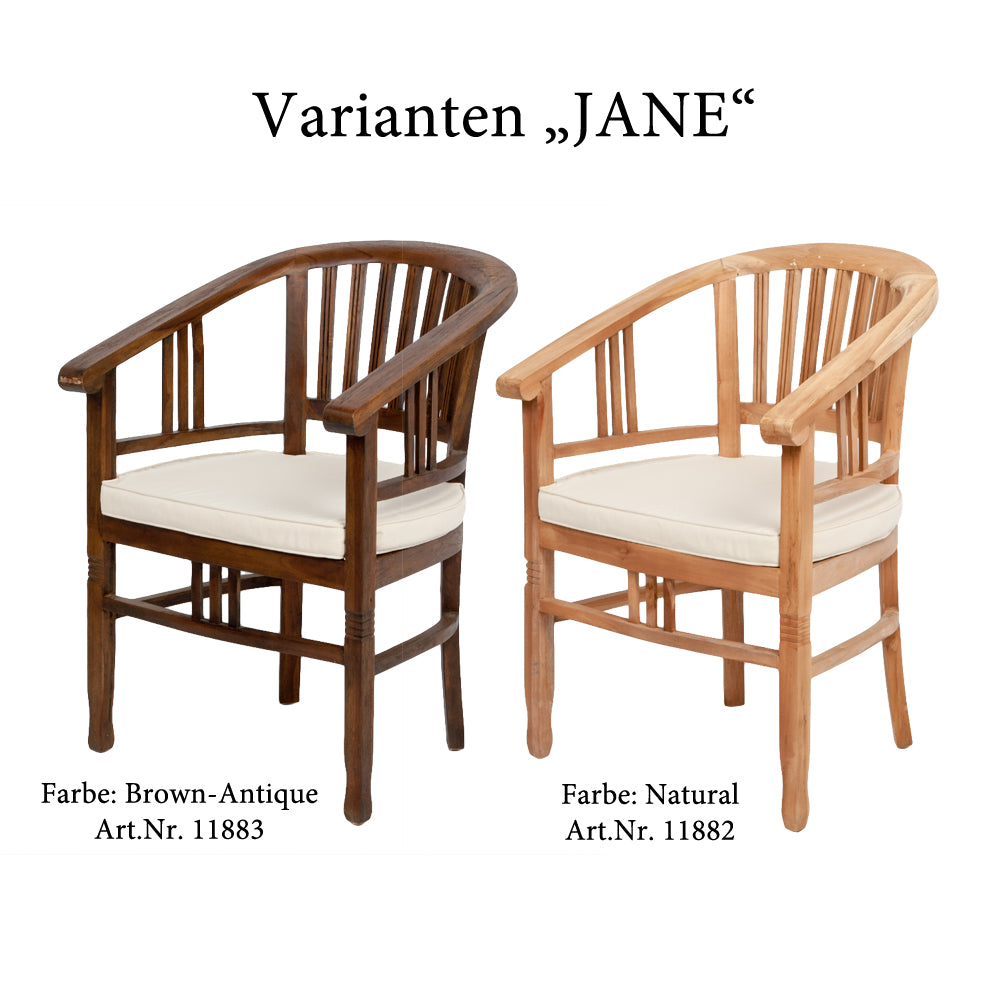 Teak Stuhl JANE Brown-Antique incl. Kissen