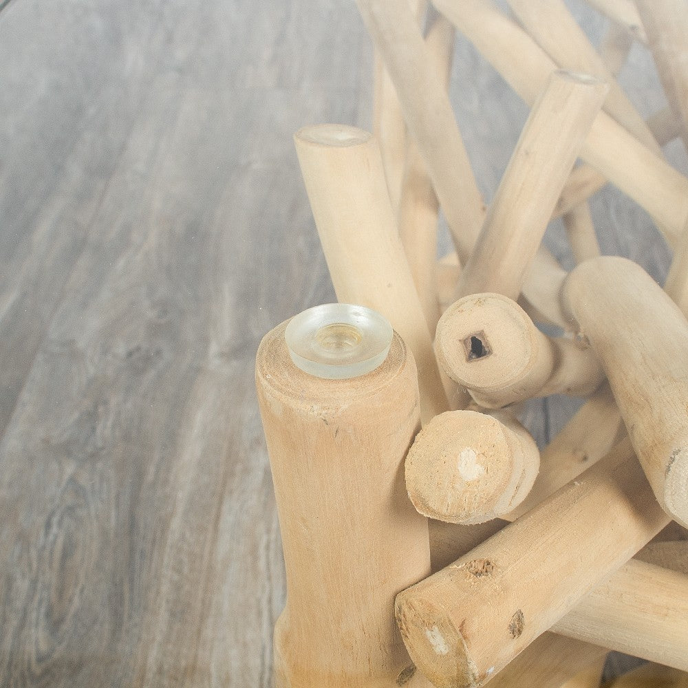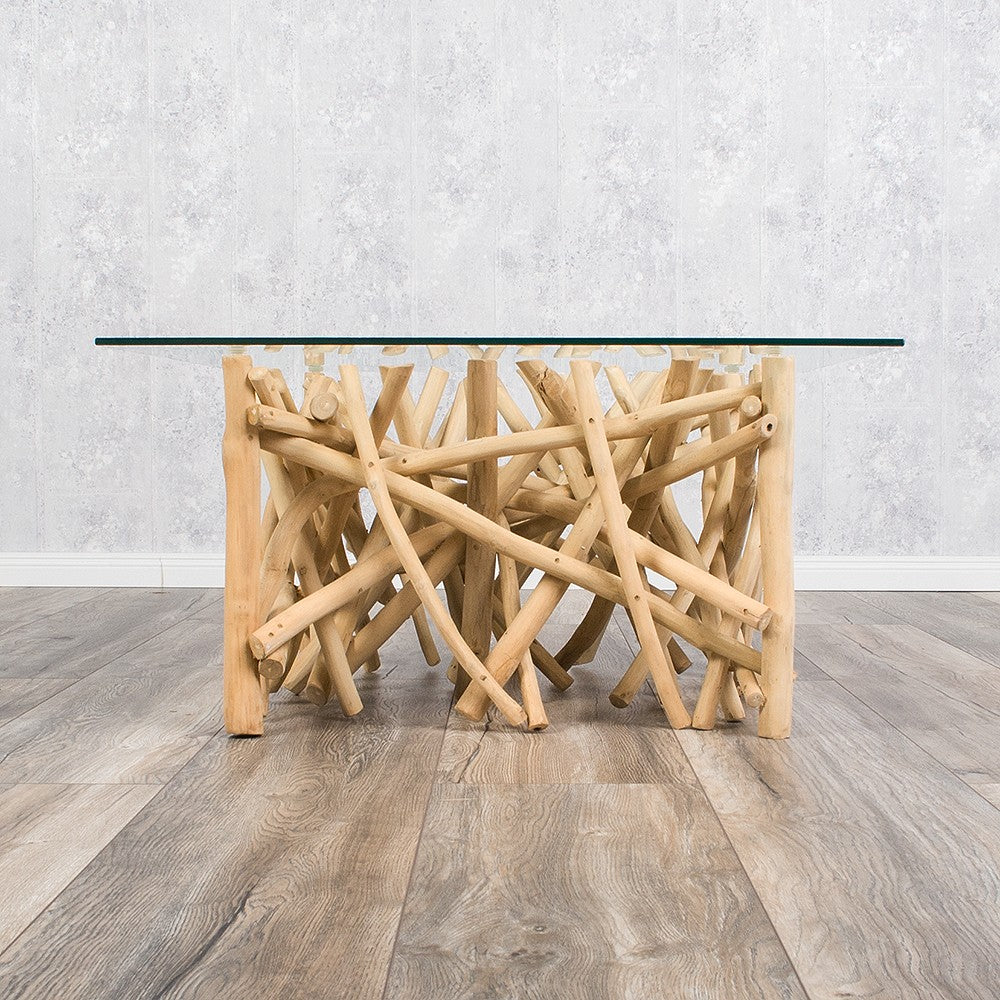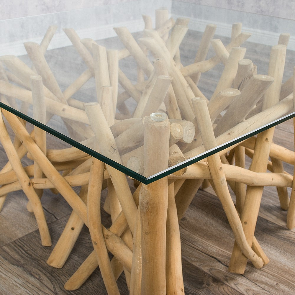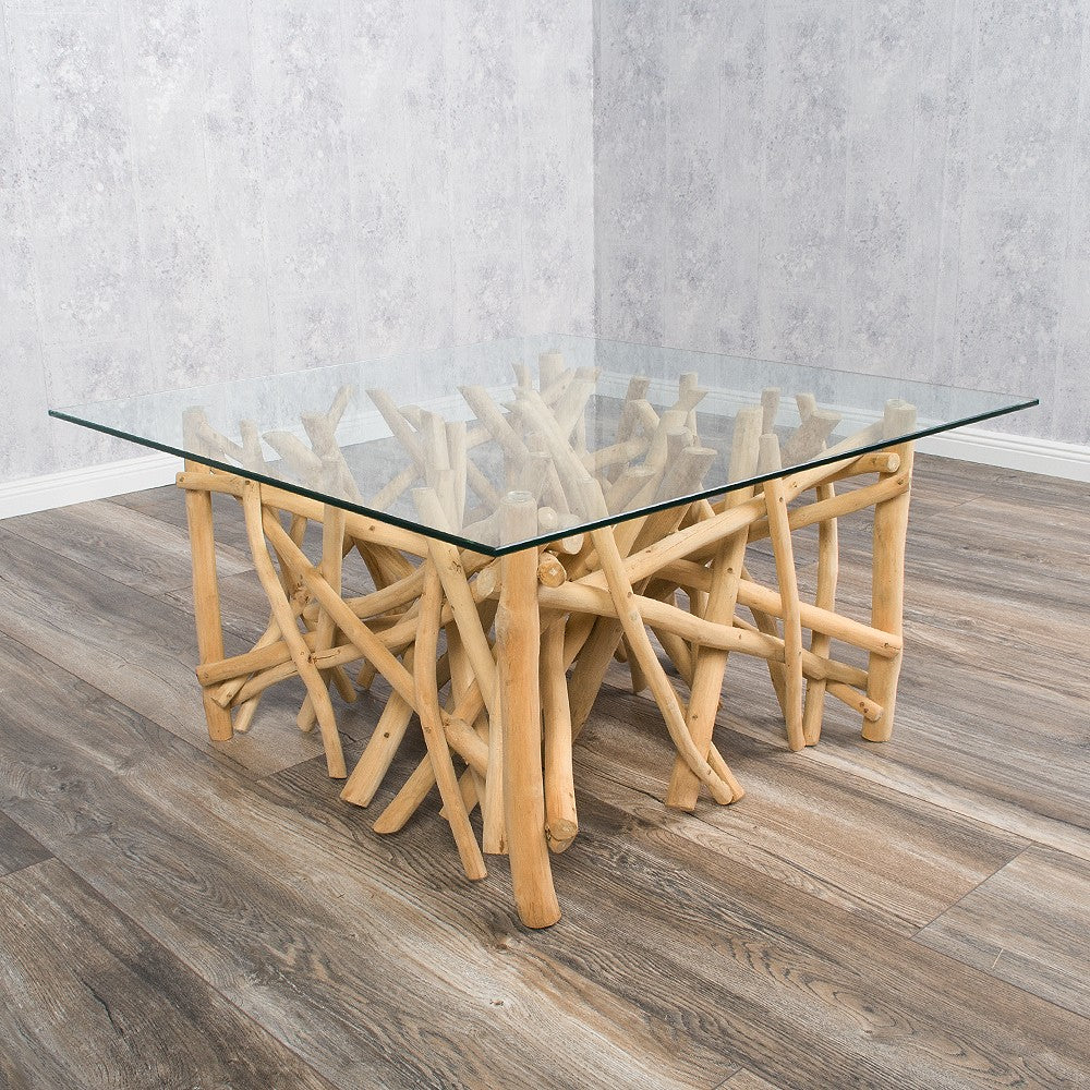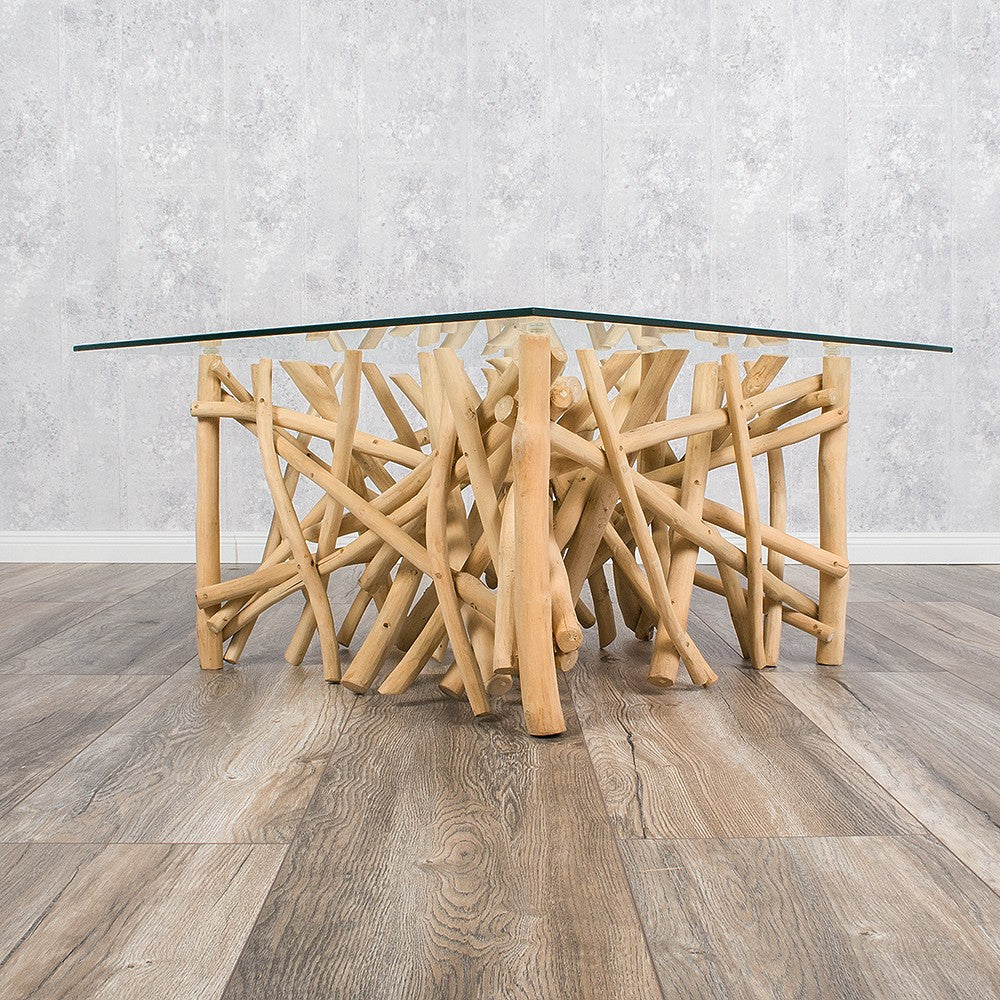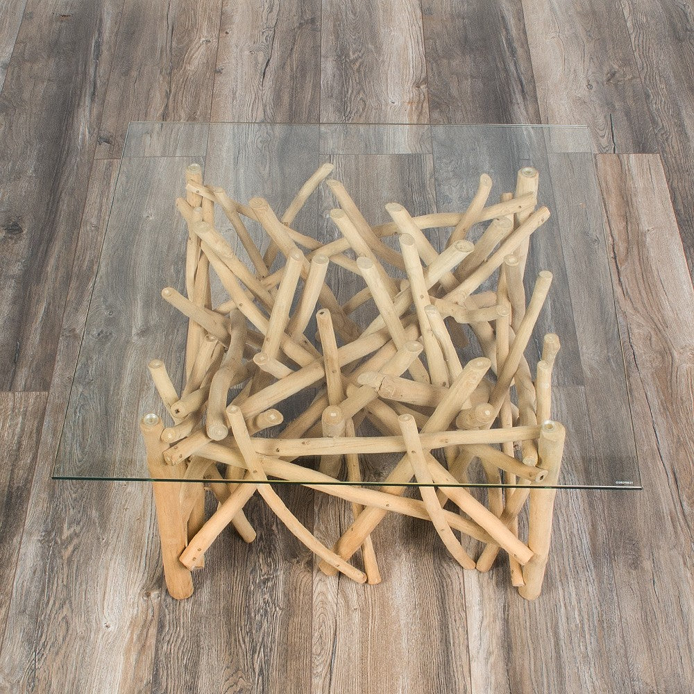 Teakholz Couchtisch DRIFT 70x70cm Glasplatte Natural