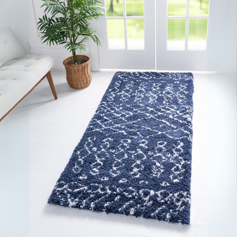 Teppich MARA Shaggy Läufer Marineblau 80x185 cm