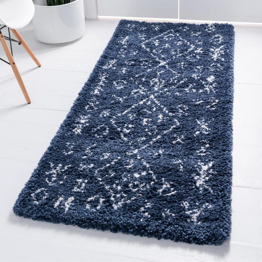 Teppich MARA Shaggy Läufer Marineblau 80x305 cm
