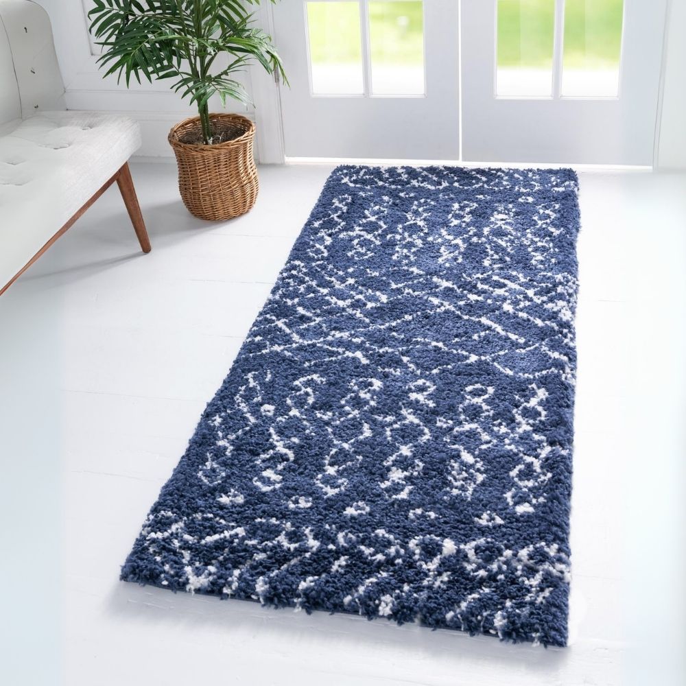 Teppich MARA Shaggy Läufer Marineblau 80x305 cm