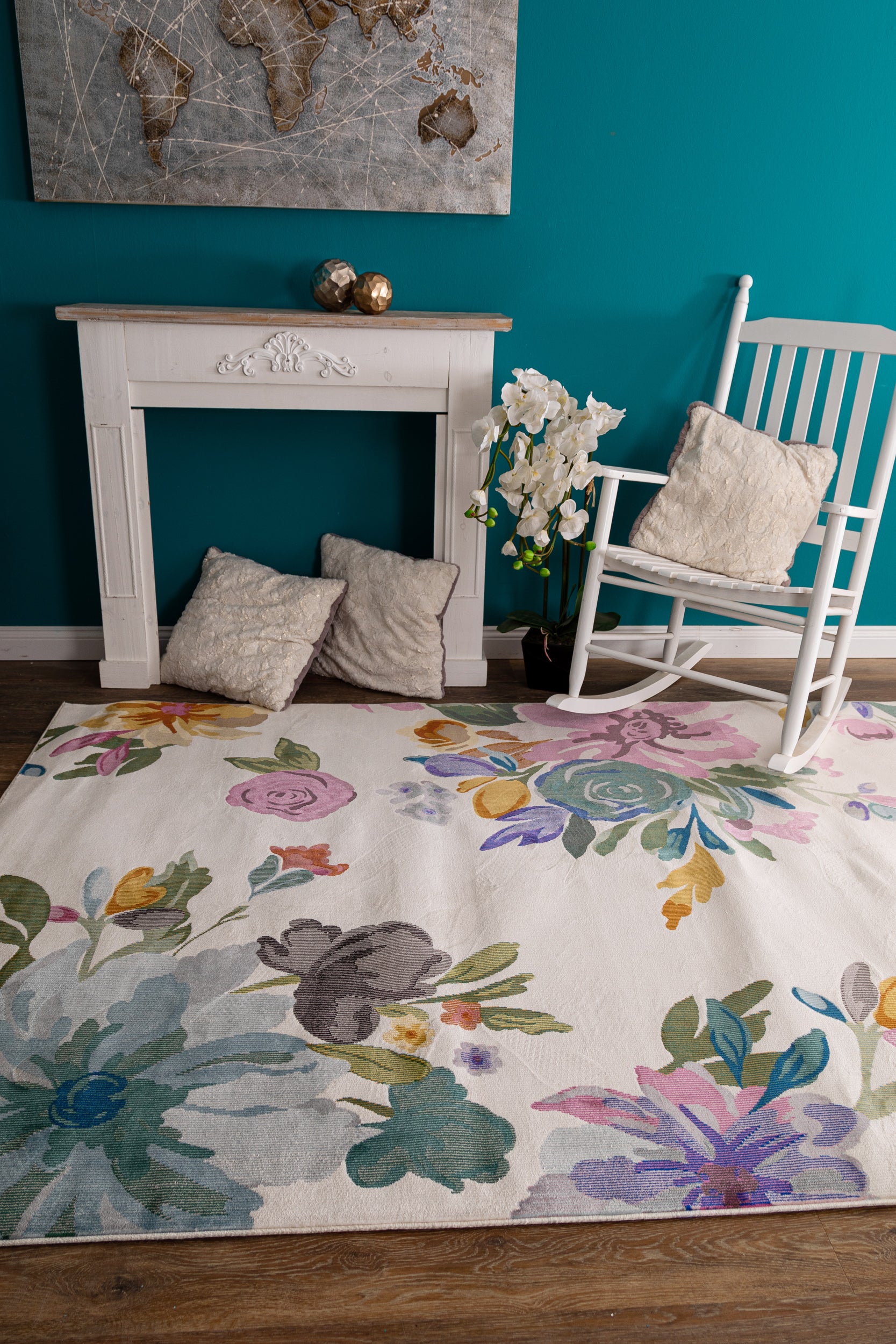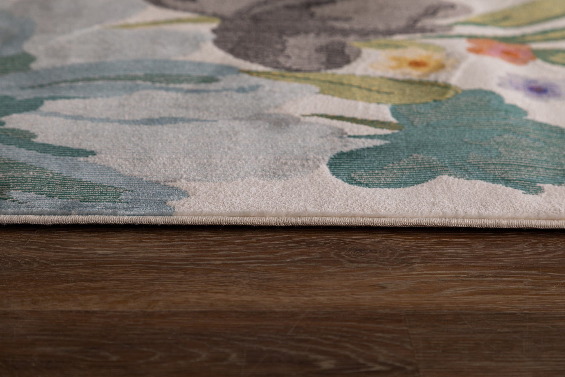 Seine bunte Farbkombination und Realistische Muster machen den Teppich zu einem wirkungsvollen Blickfang. Sein einzigartiges Design bringt tropische Perspektive und Sommer Gefühle zu Ihnen nach Hause.