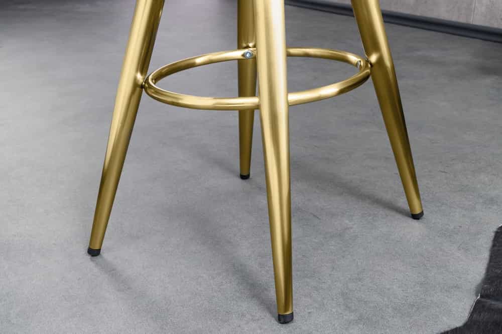Wenn er nicht nur funktional, sondern auch stilvoll sein soll, dann ist unser Barhocker FABRICA im Industrie-Look genau das Richtige für Dich! Mit seinem markanten Design und der Kombination aus gebürstetem Gold und mattem Schwarz verleiht er Deinem Zuhause eine moderne und industrielle Note. Die robuste Metallkonstruktion und die Möglichkeit zur Höhenverstellung machen ihn nicht nur zu einem Blickfang, sondern auch zu einem äußerst praktischen Möbelstück.